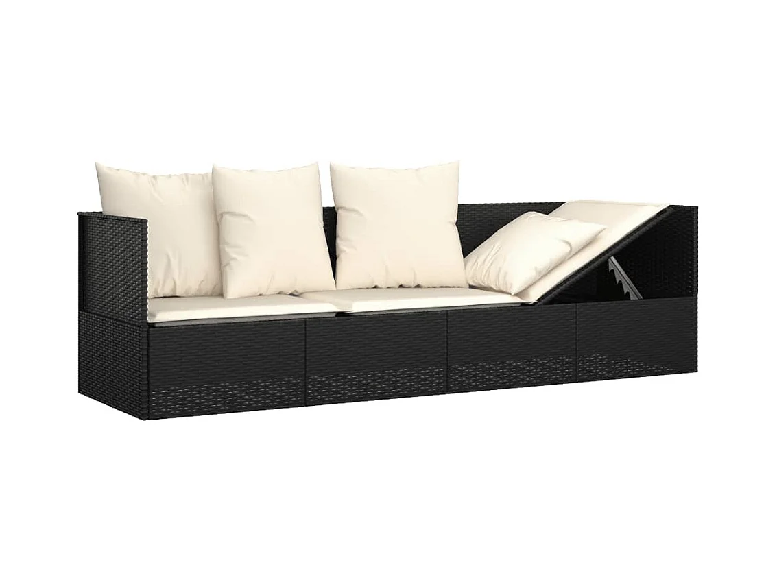 Loungebed met kussens poly rattan zwart