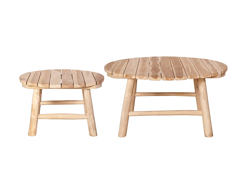 Loungeset: 3-zitsbank + 2 stoelen + 2 salontafels - Lichtkleurig teakhout & wit - TULUM