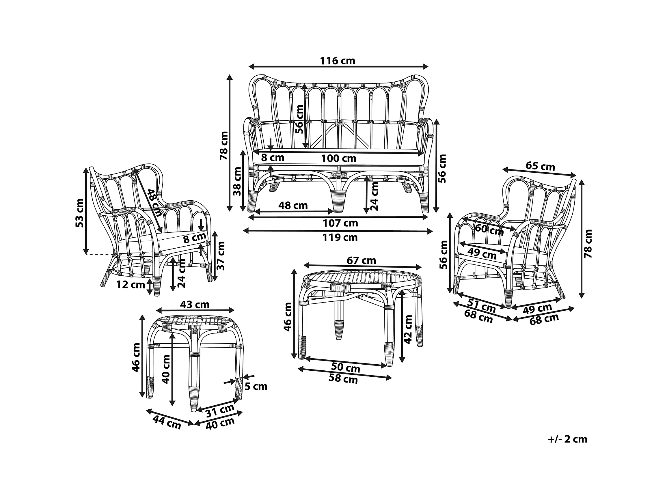 Loungeset - Tweezitsbank + 2 fauteuils