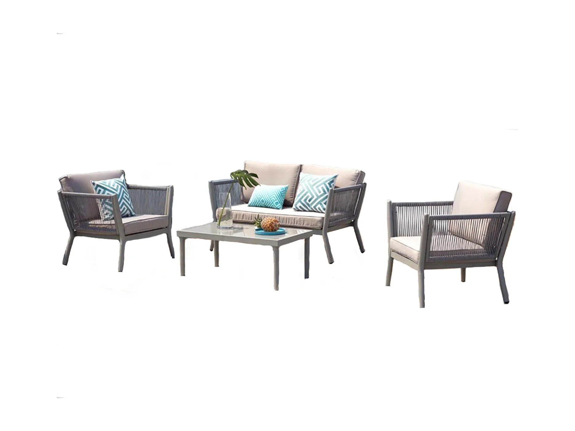 Loungeset 4-zits van aluminium en lichtgrijs touw Anahma