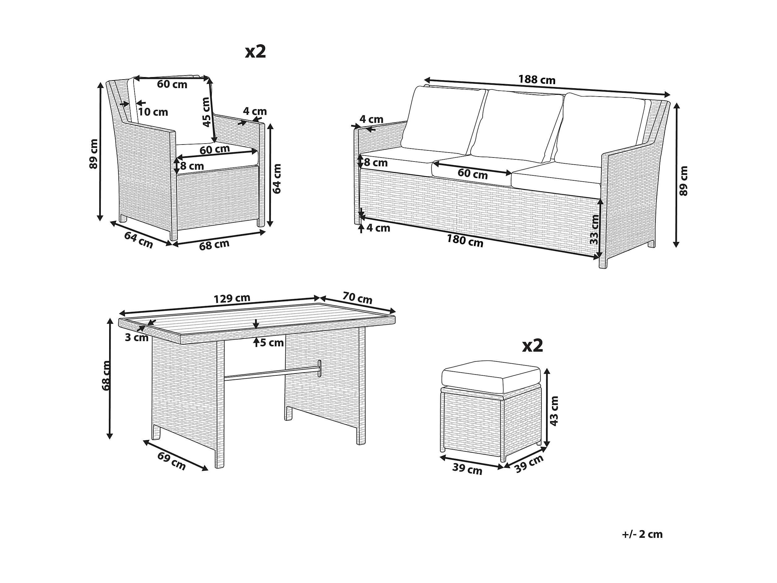 Loungeset met tafel en ottomaan 5-zitter FONTI met kussens Taupe