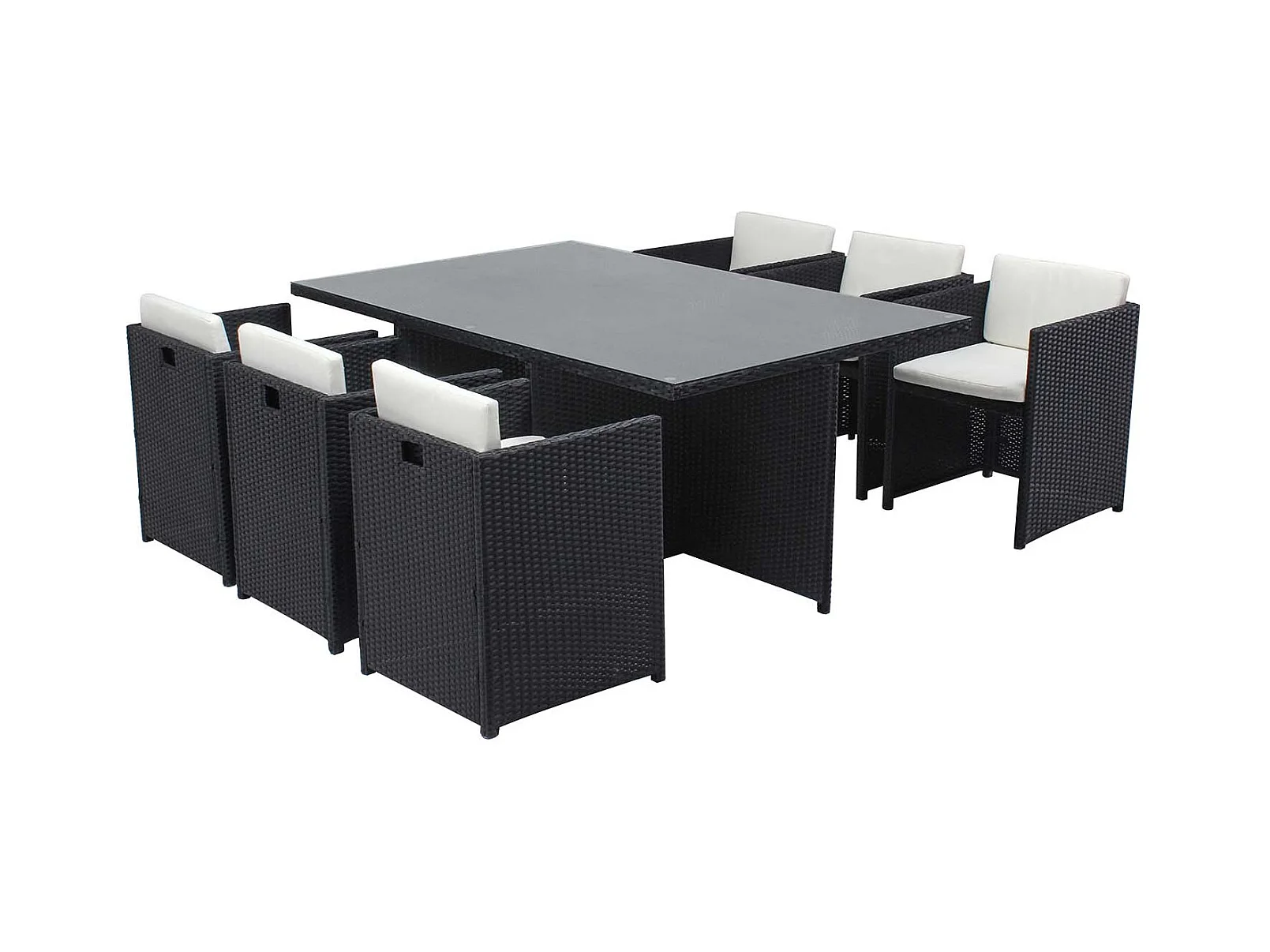 BONIFACIO tuinmeubelset van zwart gevlochten kunststof, 6 zitplaatsen - grijs kussen