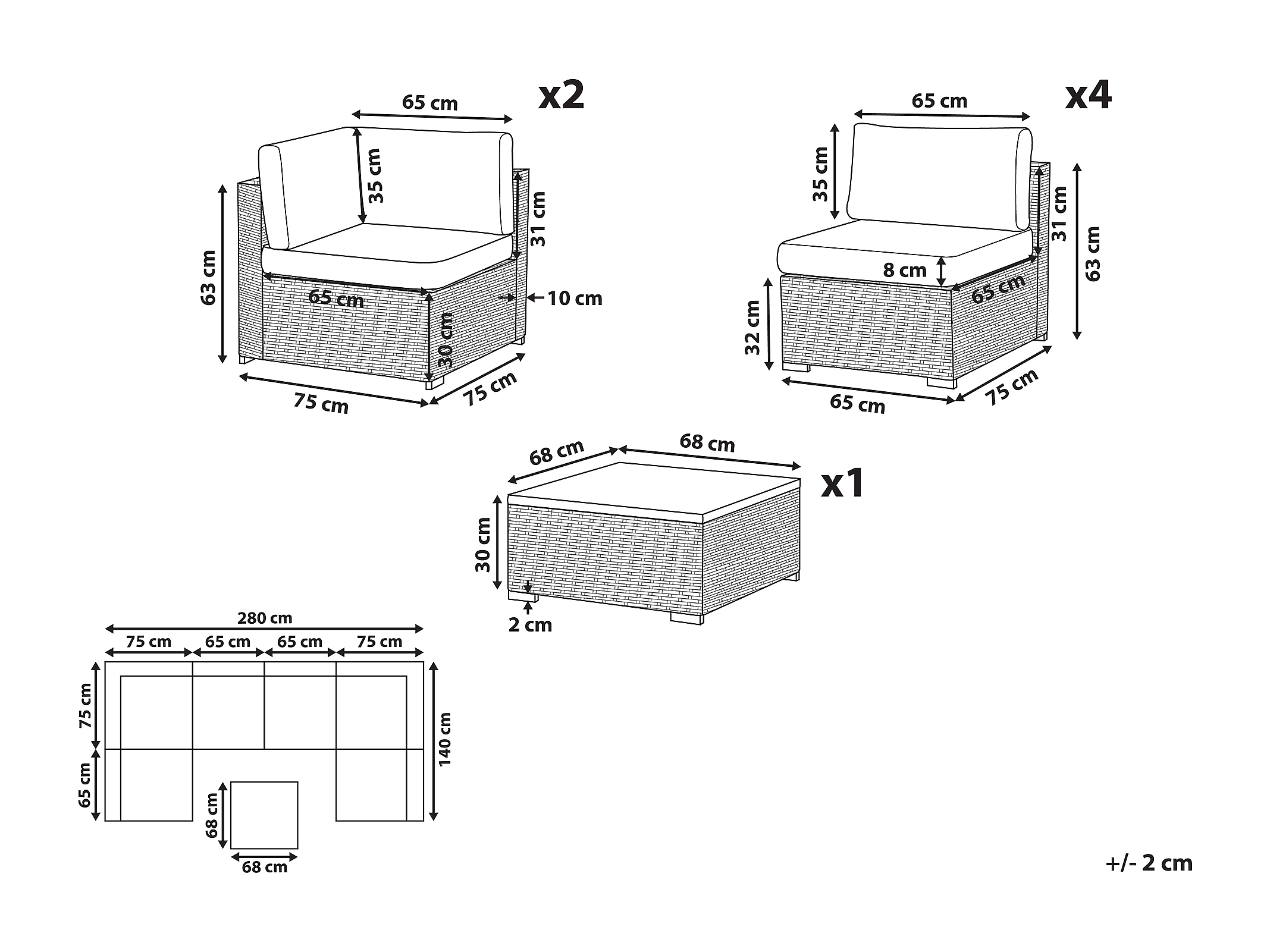 Loungeset met tafel 6-zitter CORTE Donkerbruin