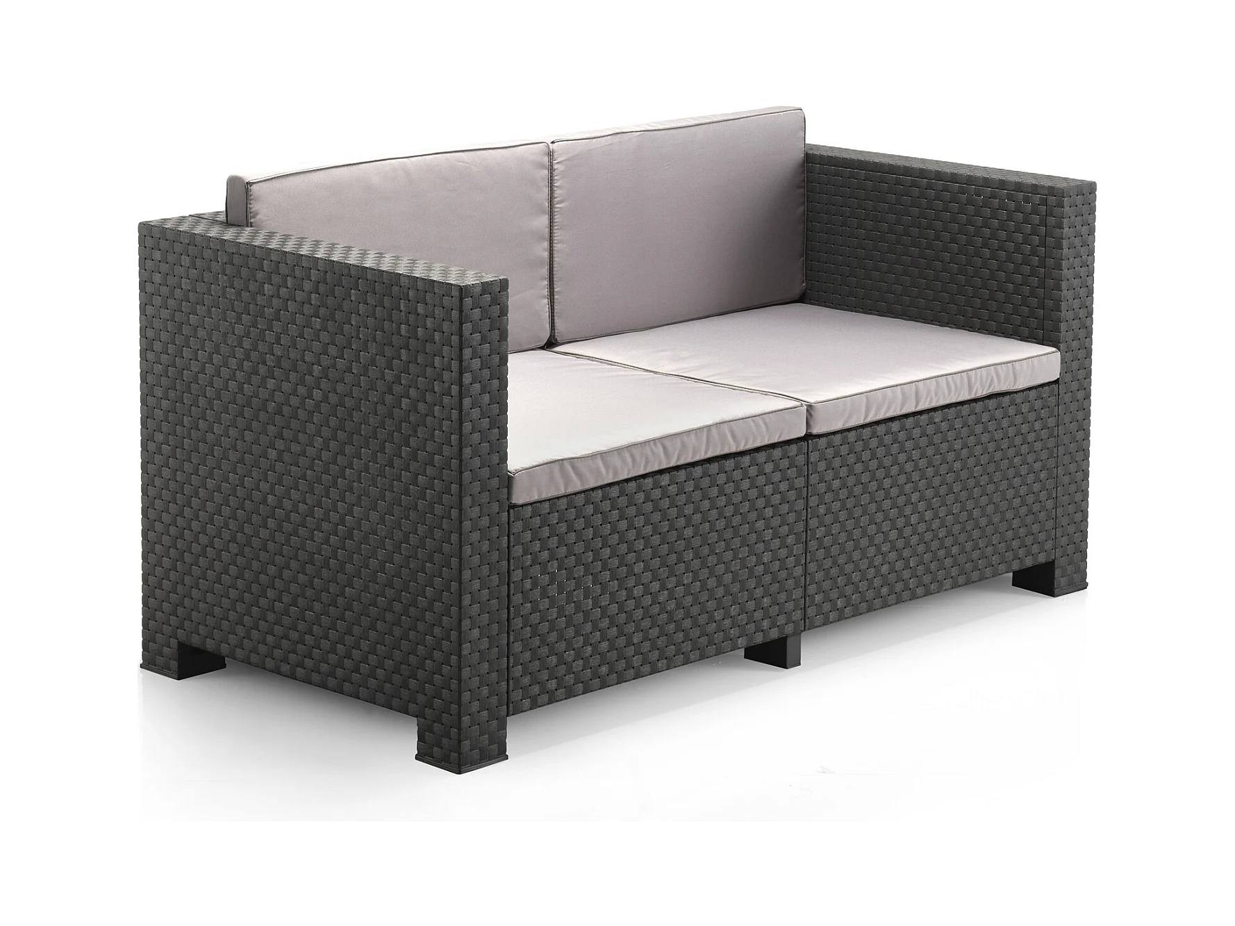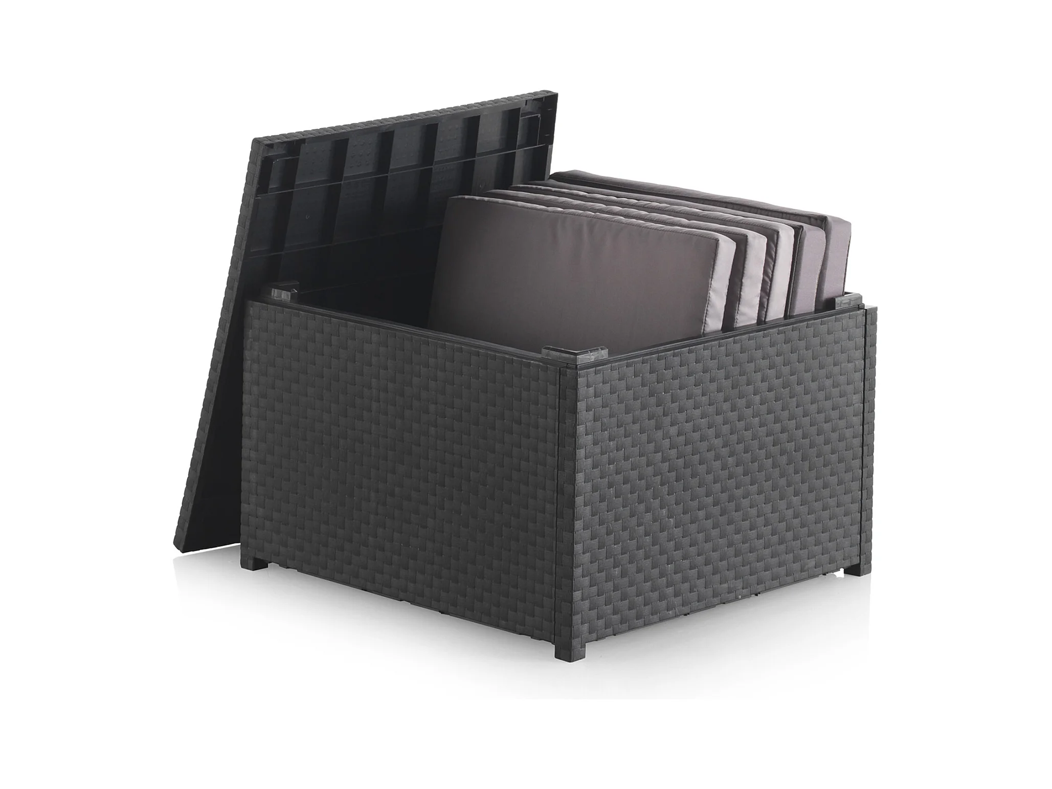 Loungeset voor 4 personen van grijs spuitgegoten hars met opbergbox ANKARA