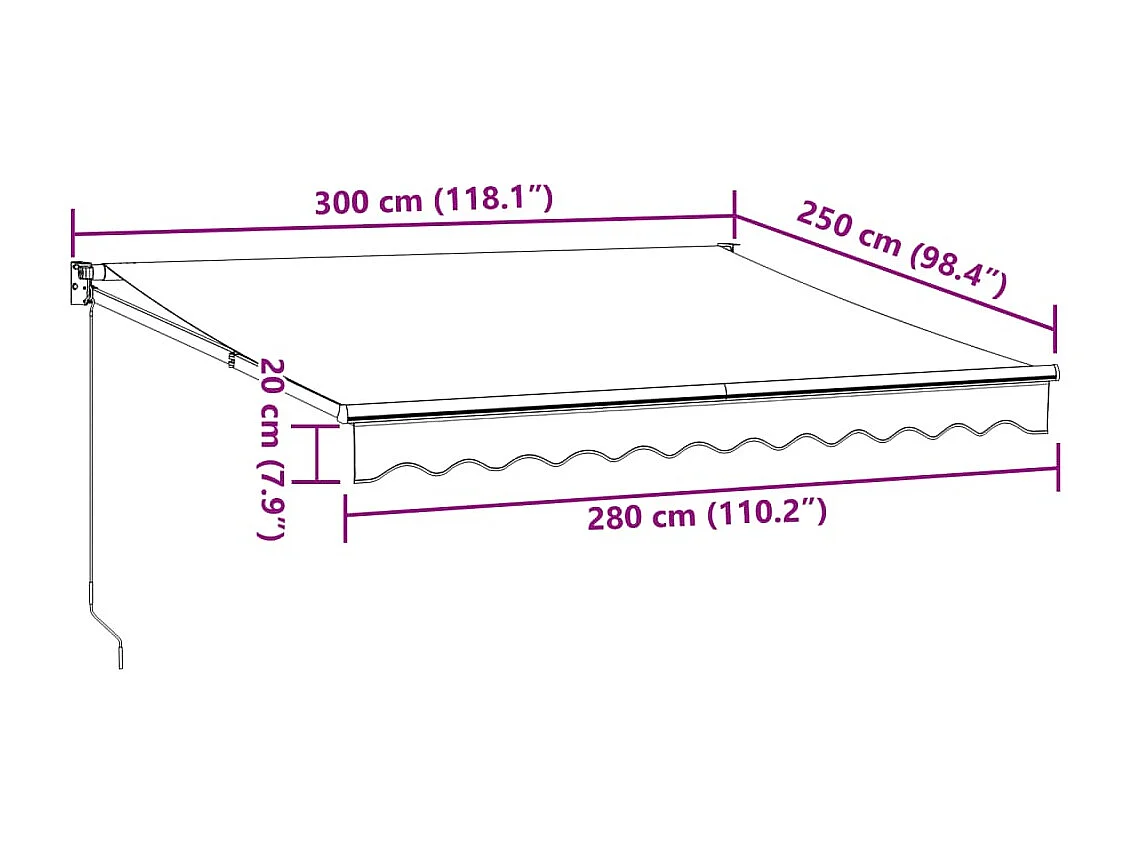 Luifel uittrekbaar 3x2,5 m stof en aluminium antraciet en wit
