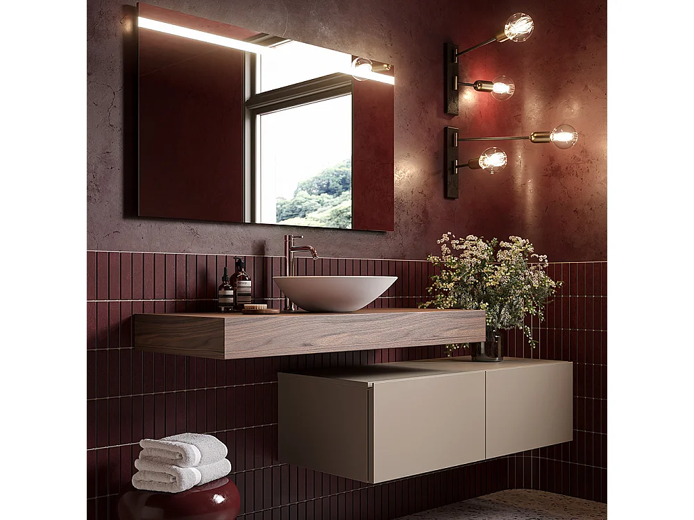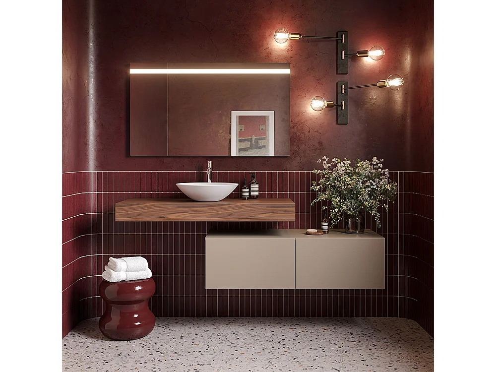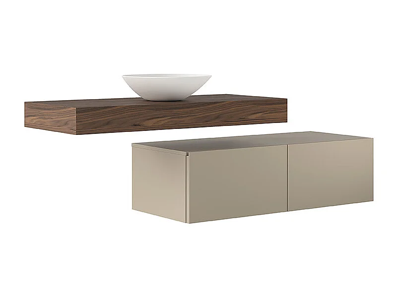 Lumis Badkamerkast - 2 Duifgrijze Ladekast - Canaletto Walnootplank - Keramische Centrale Wastafel - 32X120