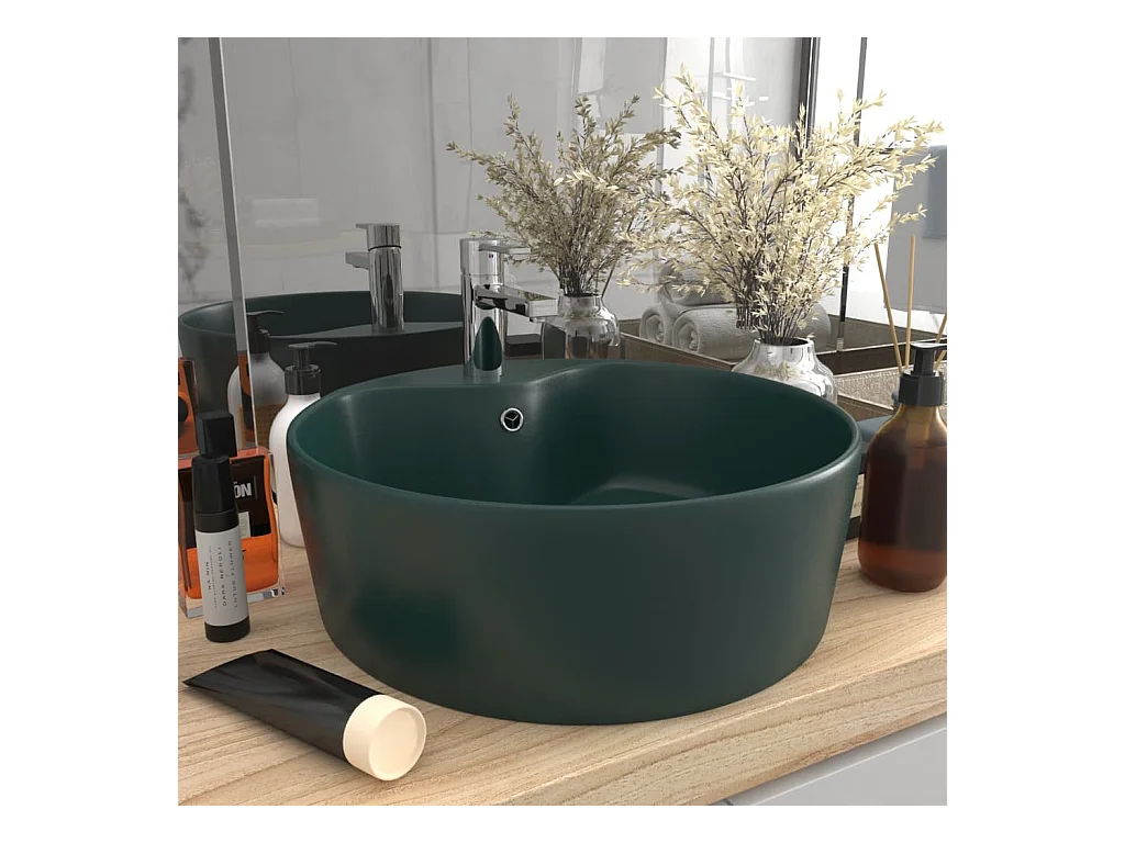 Luxe wastafel met overloop Mat donkergroen 36x13cm Keramiek