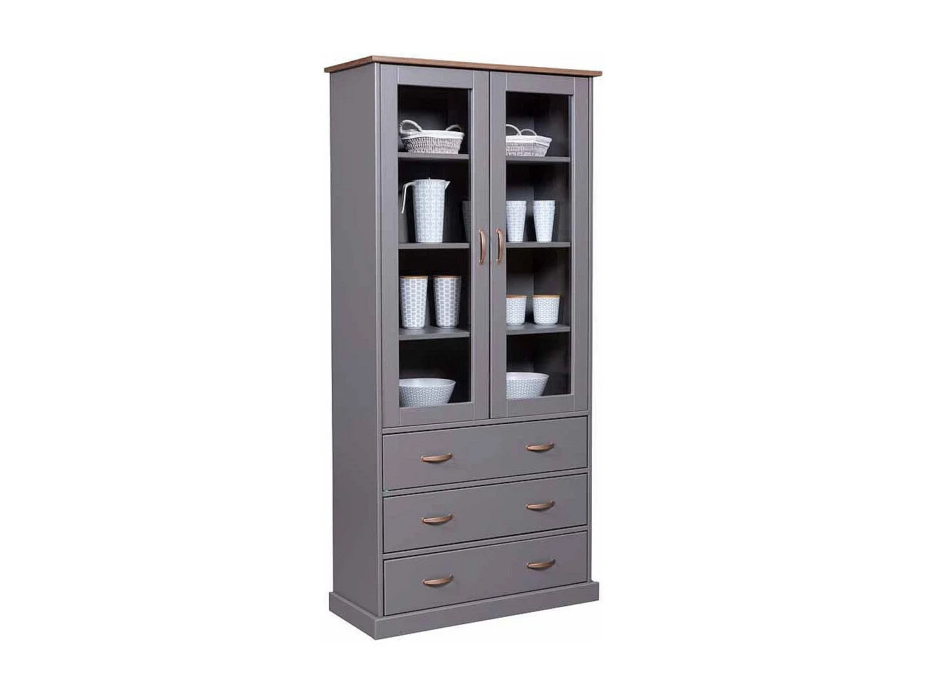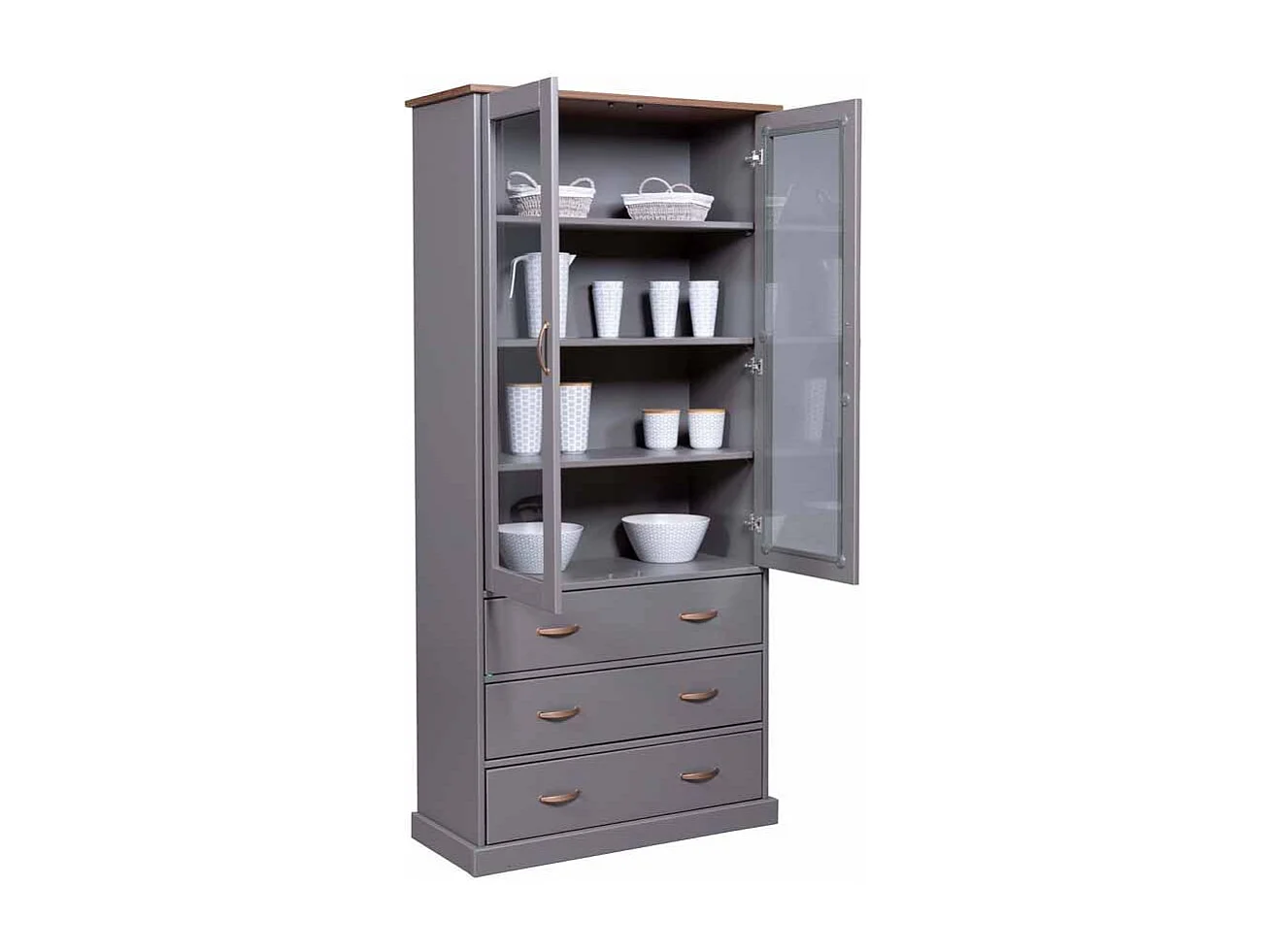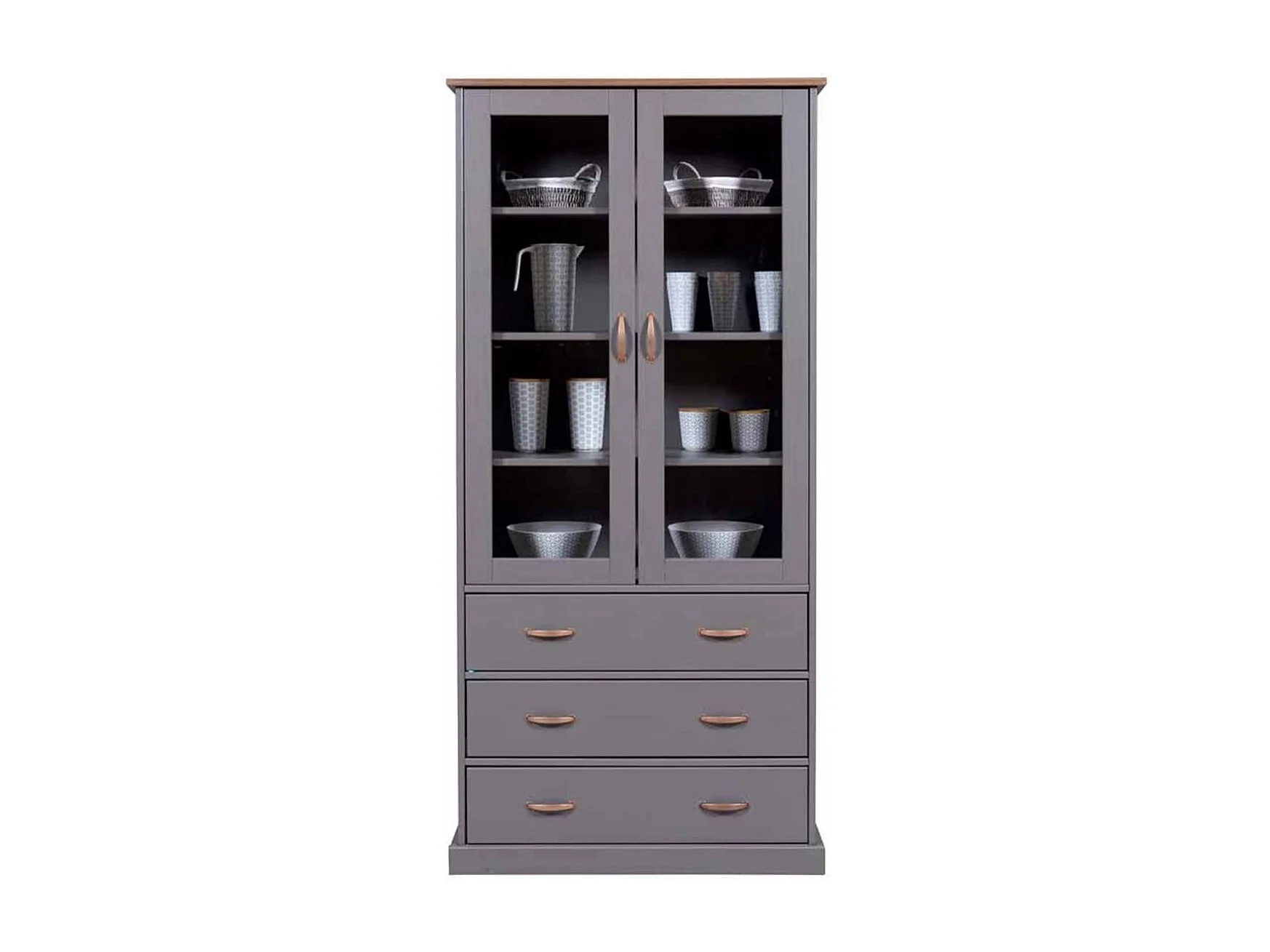 Luzerna vitrinekast 2 deuren, 3 laden grijs.