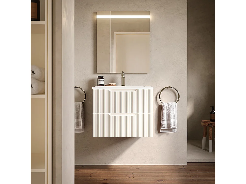 Lynea Badkamerkast Geribbeld Versie, Witte Afwerking, 2 Lades En Centrale Wastafel.