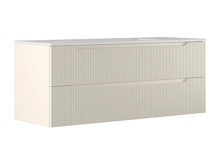 Lynea Badkamerkast Geribbeld Versie, Witte Afwerking, 2 Lades En Centrale Wastafel.