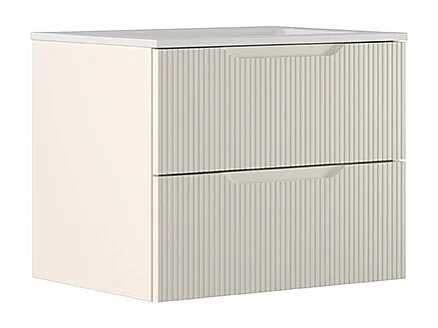 Lynea Badkamerkast Geribbeld Versie, Witte Afwerking, 2 Lades En Centrale Wastafel.