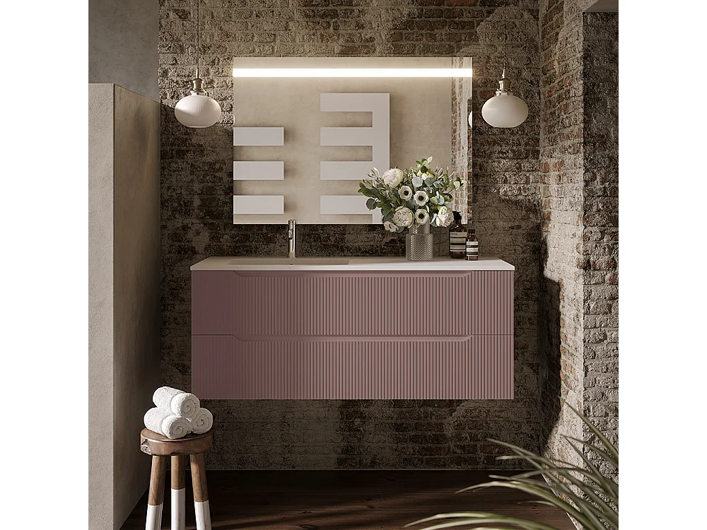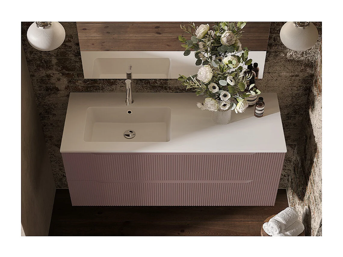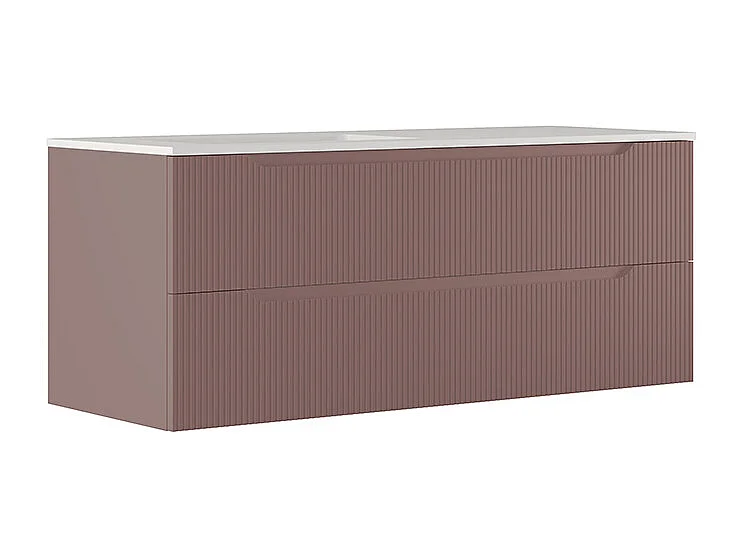 Lynea Badkamerkast Geribbelde Versie, Bruine Afwerking, 2 Lades En Wastafel Links