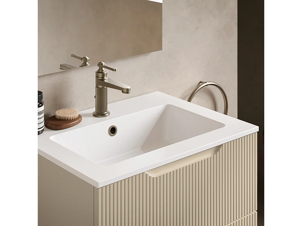 Lynea Badkamerkast Geribbelde Versie, Dove Grey Afwerking, 2 Lades En Centrale Wastafel