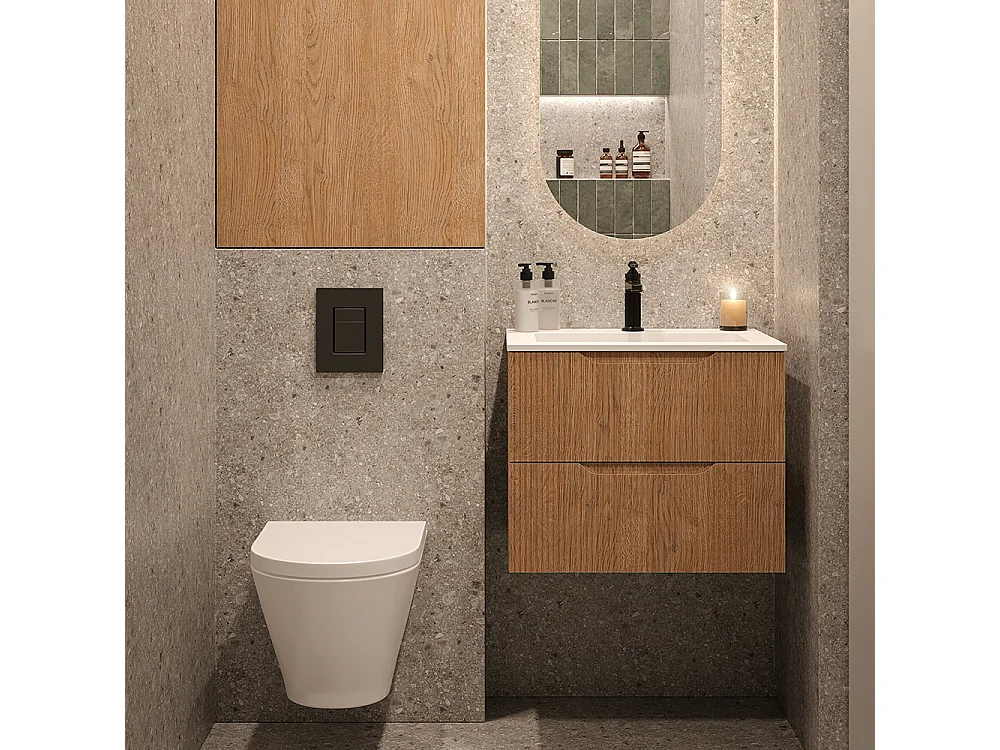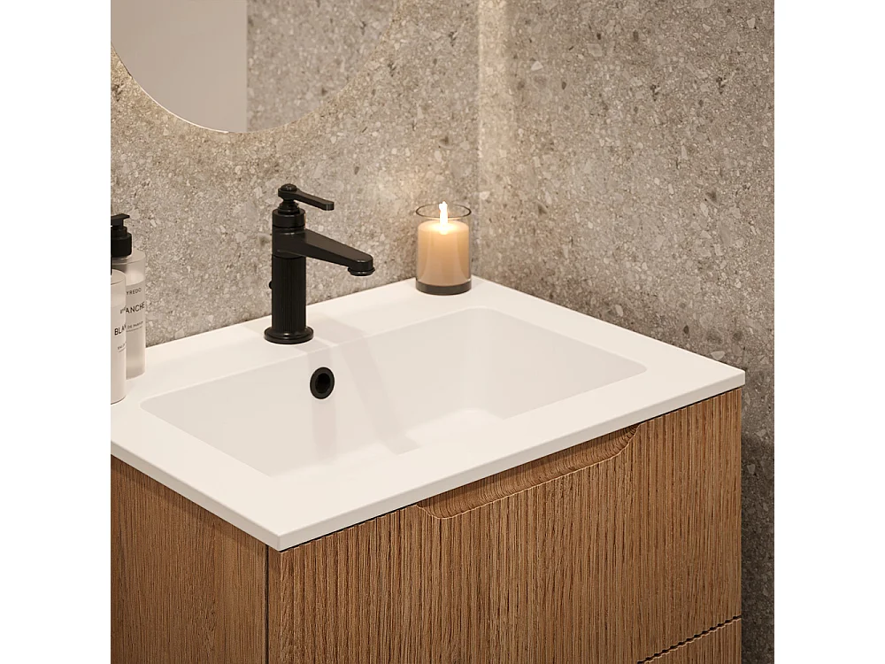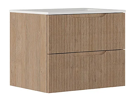 Lynea Badkamerkast Geribbelde Versie, Natuurlijke Eikenhouten Afwerking, 2 Lades En Centrale Wastafel.