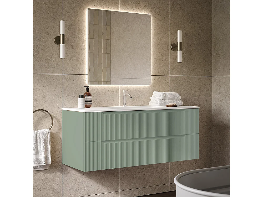 Lynea Badkamerkast Geribbelde Versie, Salieafwerking, 2 Lades En Centrale Wastafel