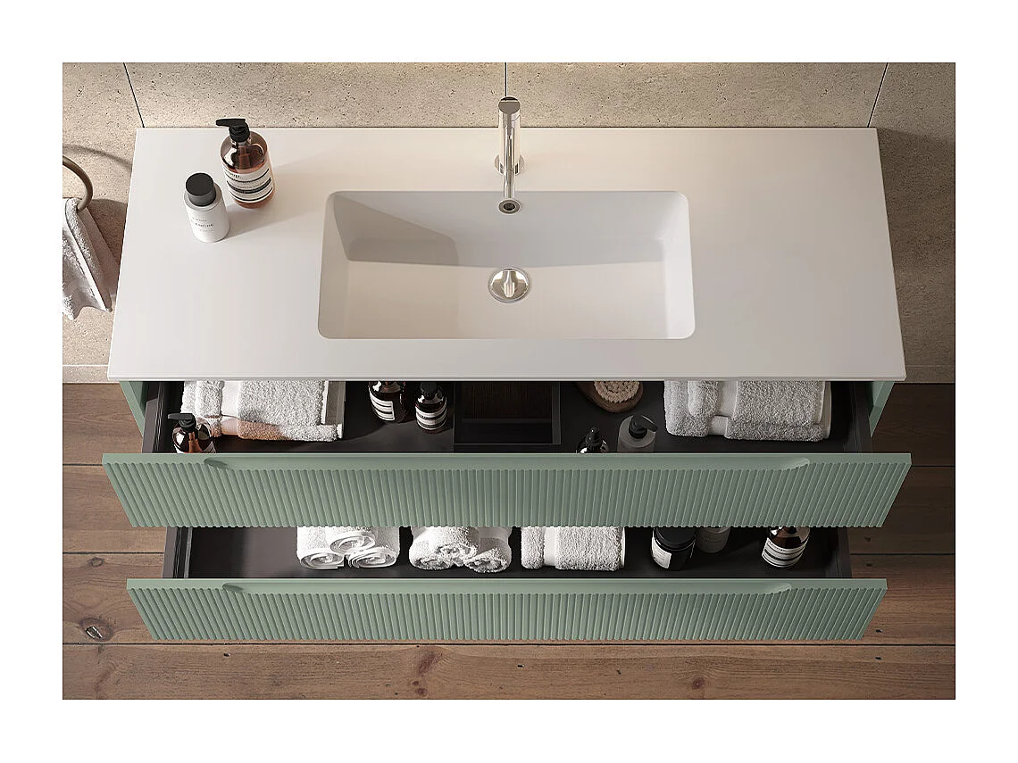 Lynea Badkamerkast Geribbelde Versie, Salieafwerking, 2 Lades En Centrale Wastafel