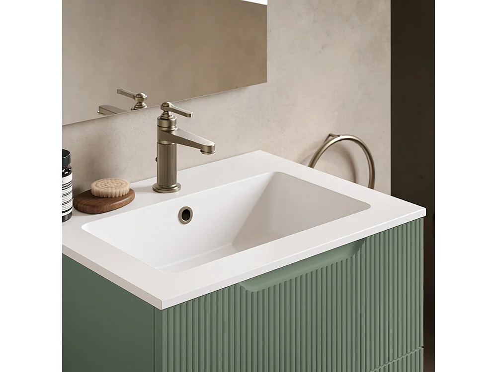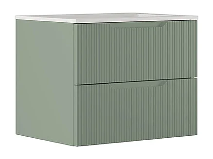 Lynea Badkamerkast Geribbelde Versie, Salieafwerking, 2 Lades En Centrale Wastafel