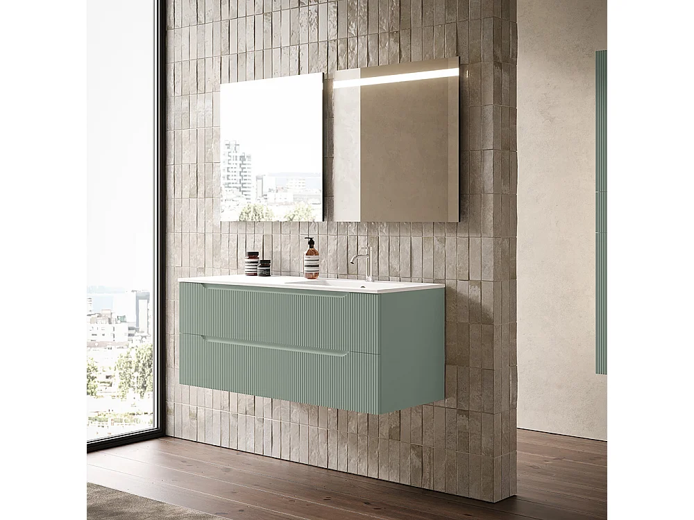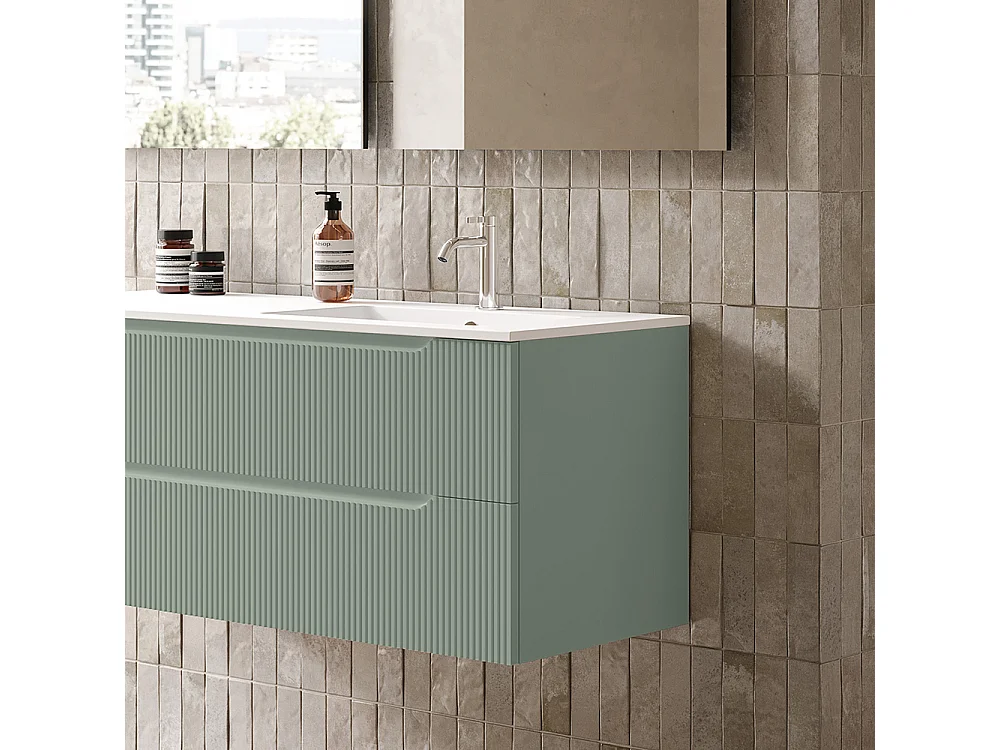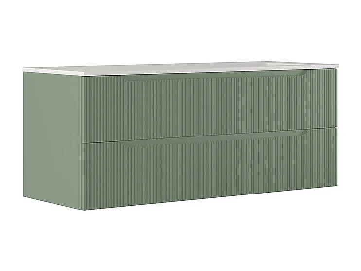 Lynea Badkamerkast Geribbelde Versie, Salieafwerking, 2 Lades En Wastafel Rechts