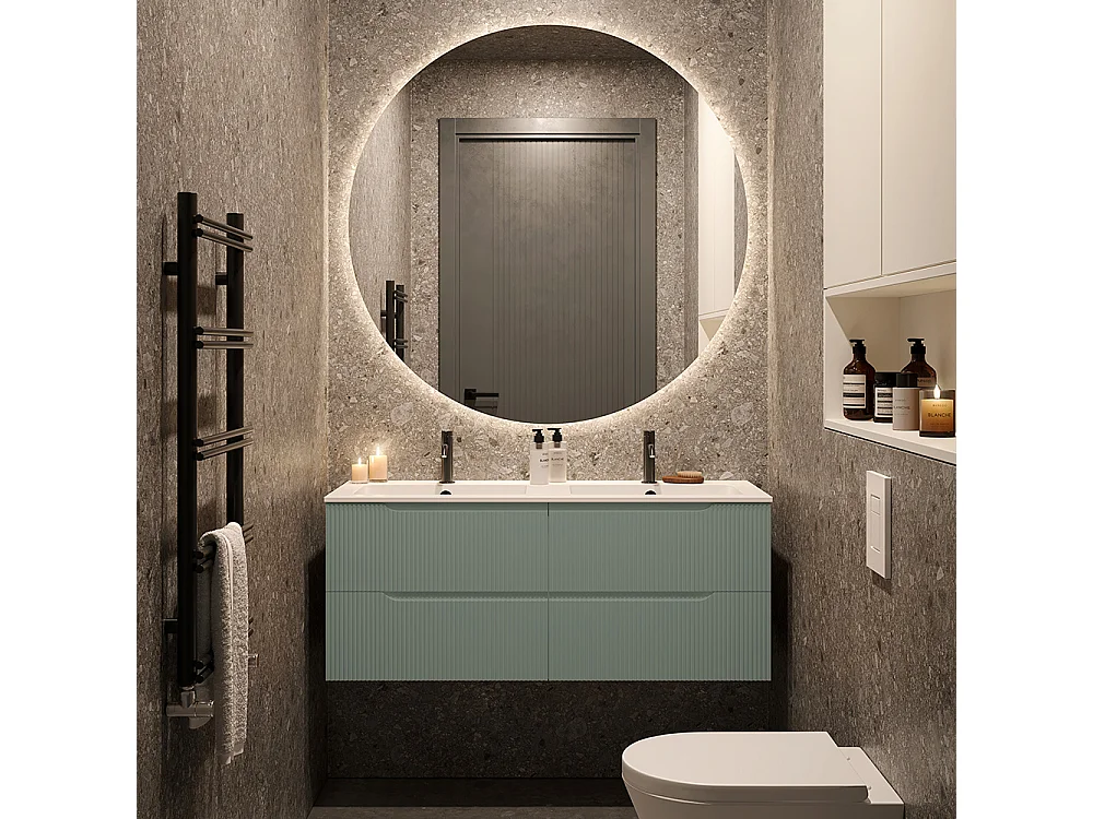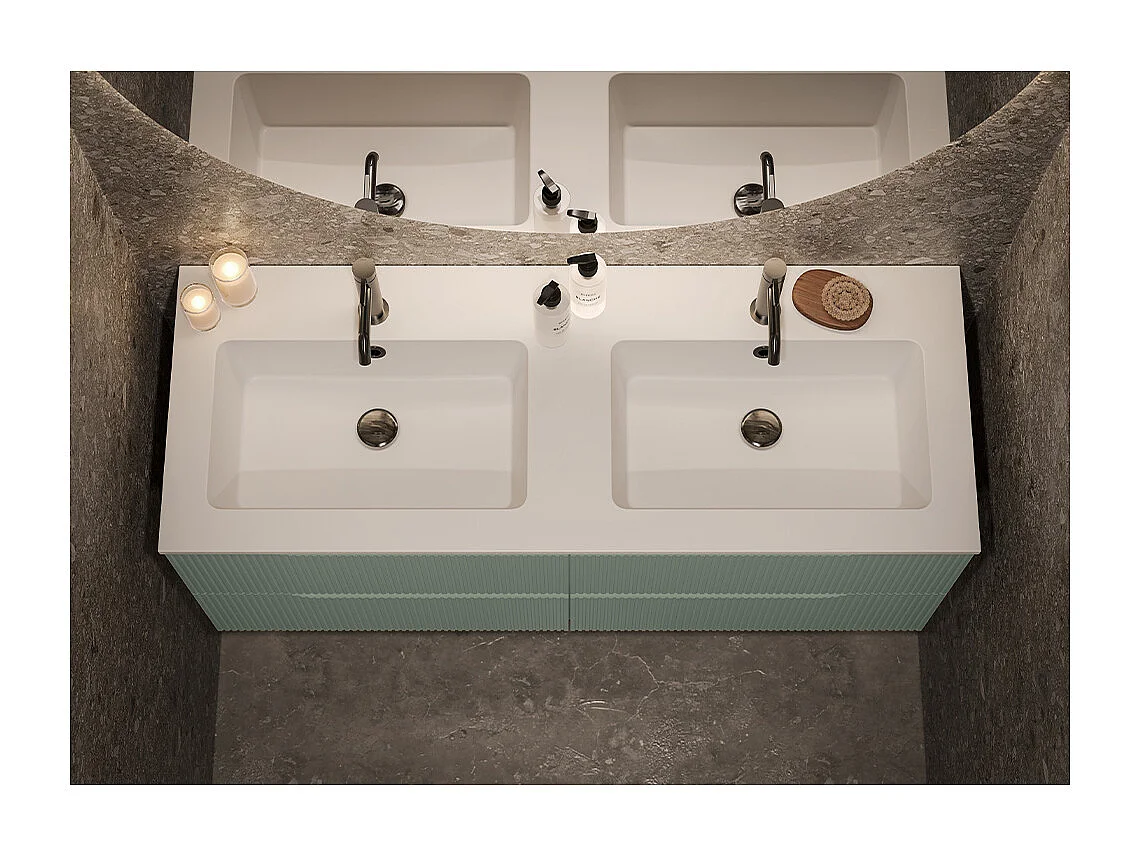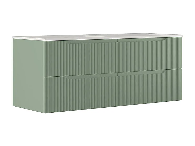 Lynea Badkamerkast Geribbelde Versie, Salieafwerking, 4 Lades En 2 Wastafels