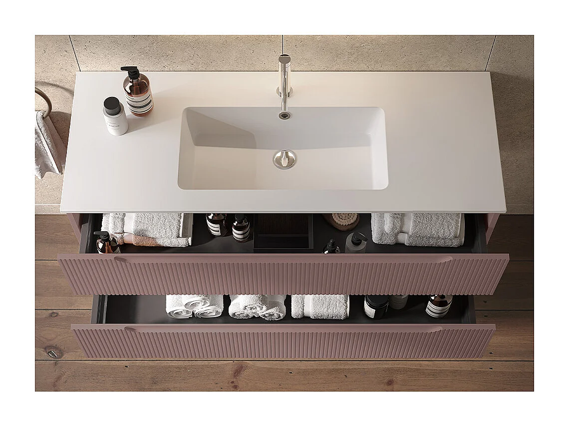 Lynea Badkamerkast Geribde Versie, Bruine Afwerking, 2 Lades En Centrale Wastafel