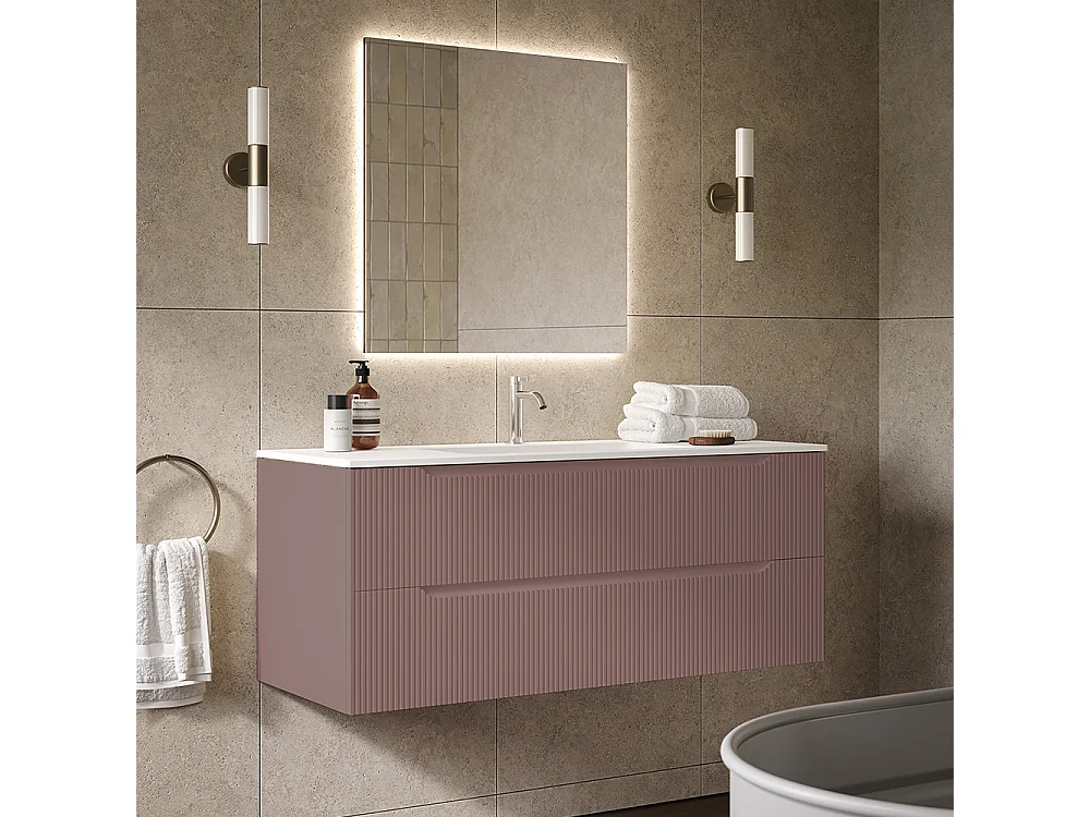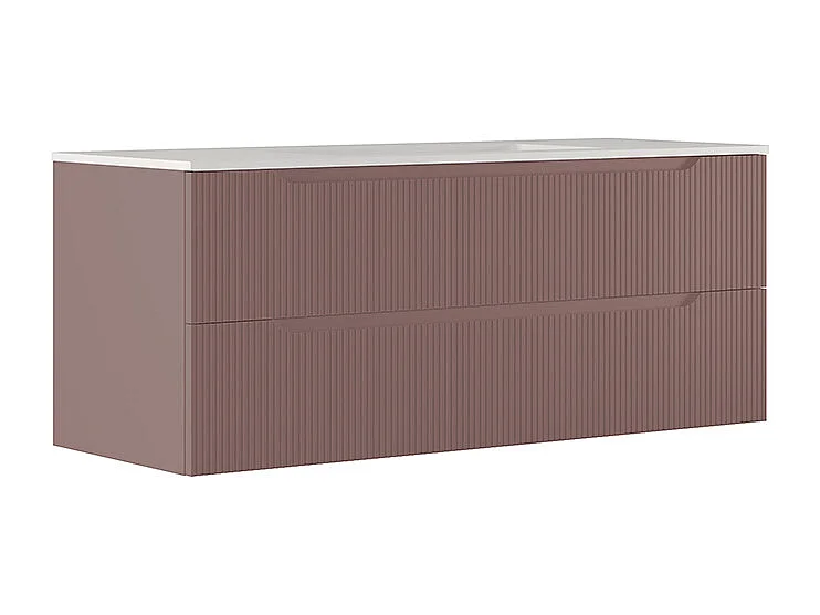 Lynea Badkamerkast Geribde Versie, Bruine Afwerking, 2 Lades En Centrale Wastafel