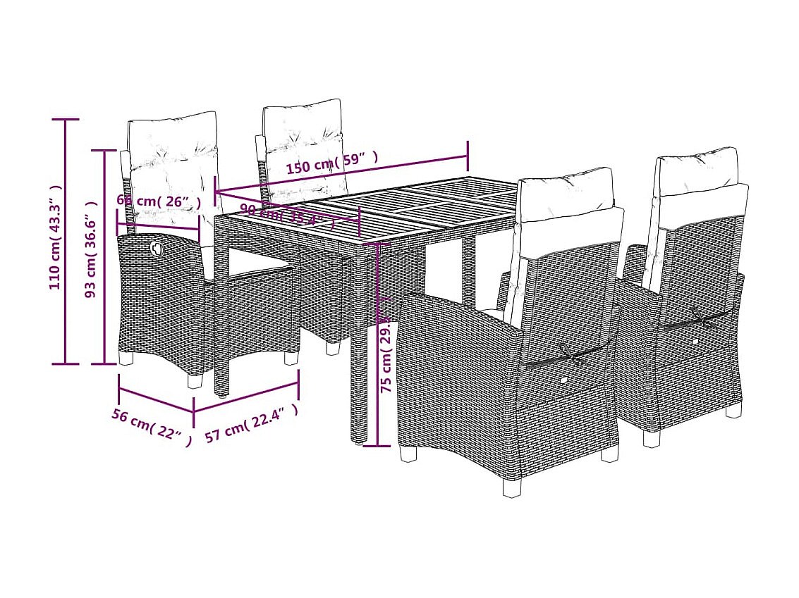 Magnir 5-delige Tuinset met kussens poly rattan grijs