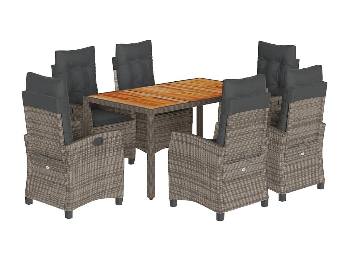 Magnir 7-delige Tuinset met kussens poly rattan grijs