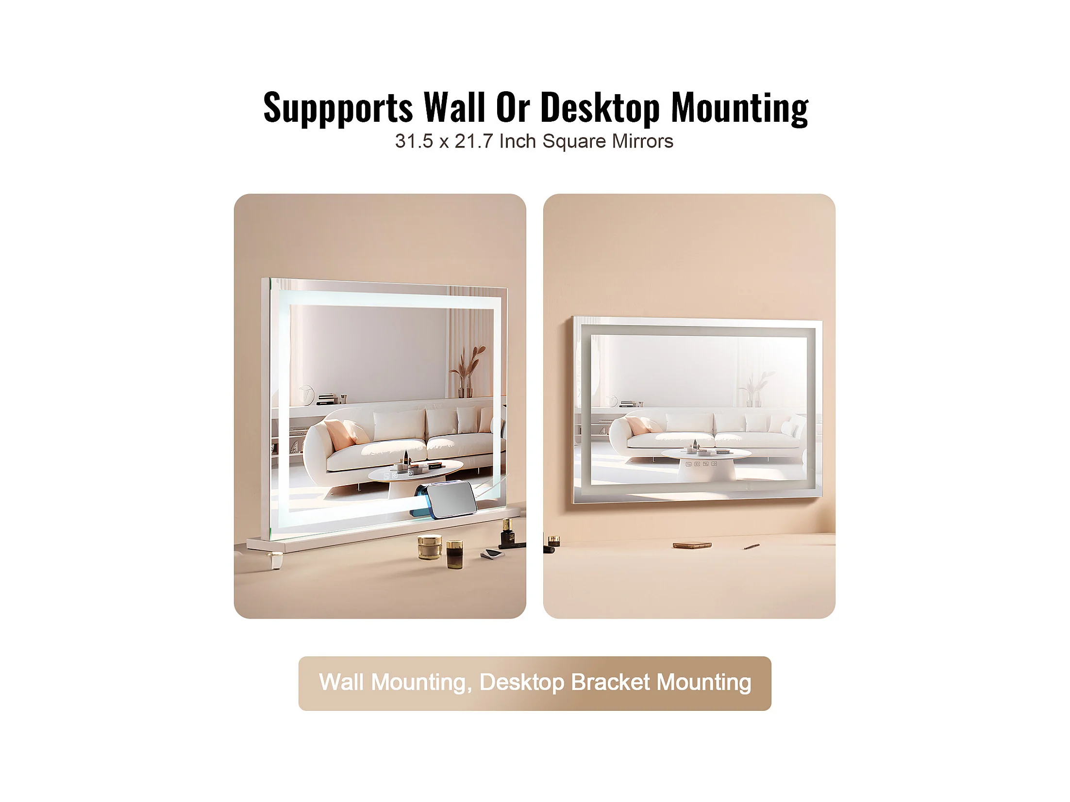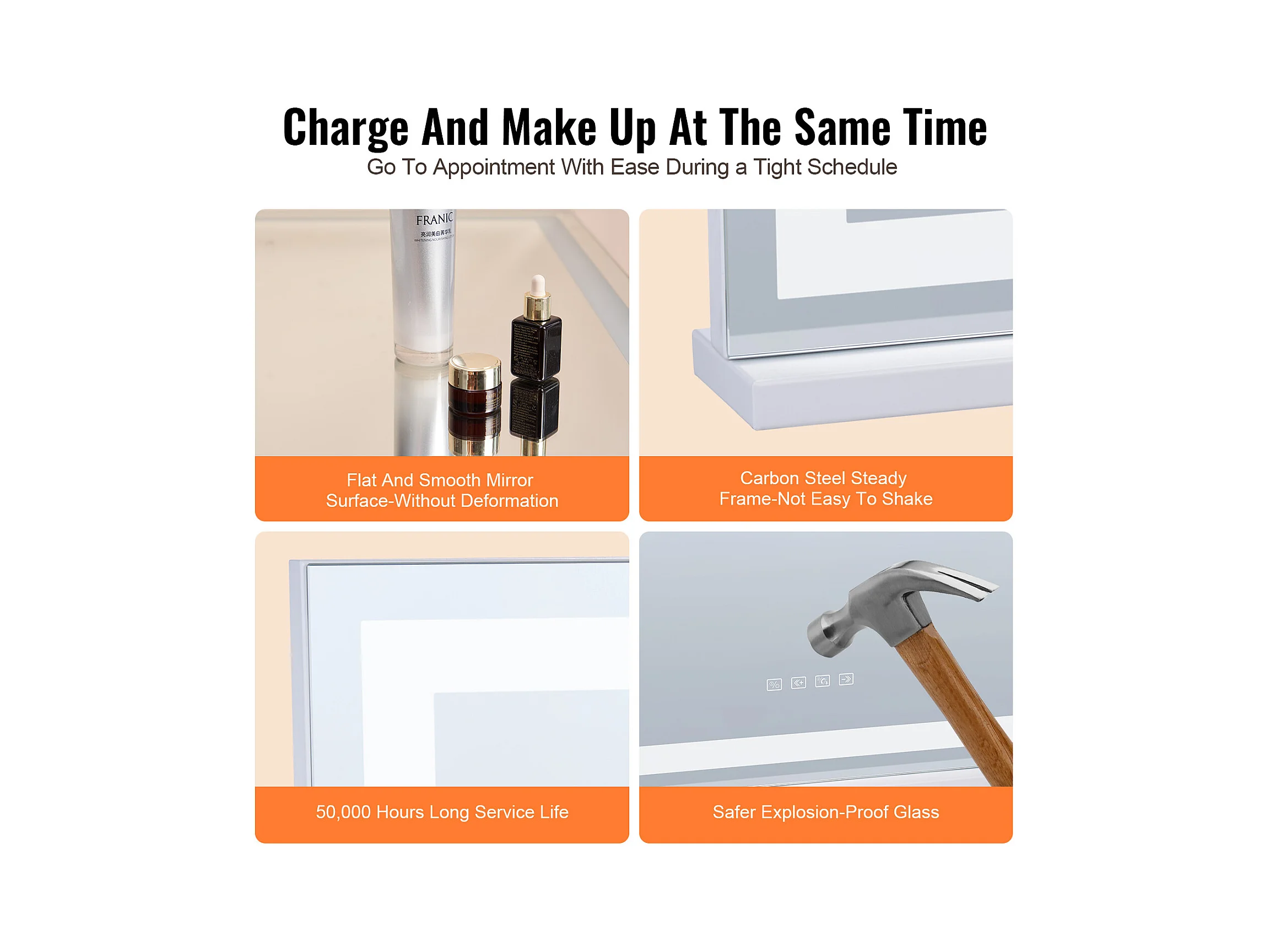 Make-up Spieghel SucceBuy 58 x 46 cm, Wit, Hollywood-stijl Hofelijkheidsspiegel met Verlichting