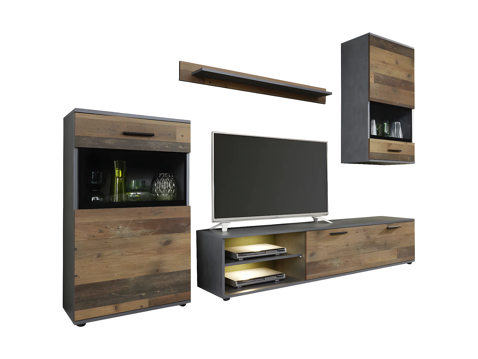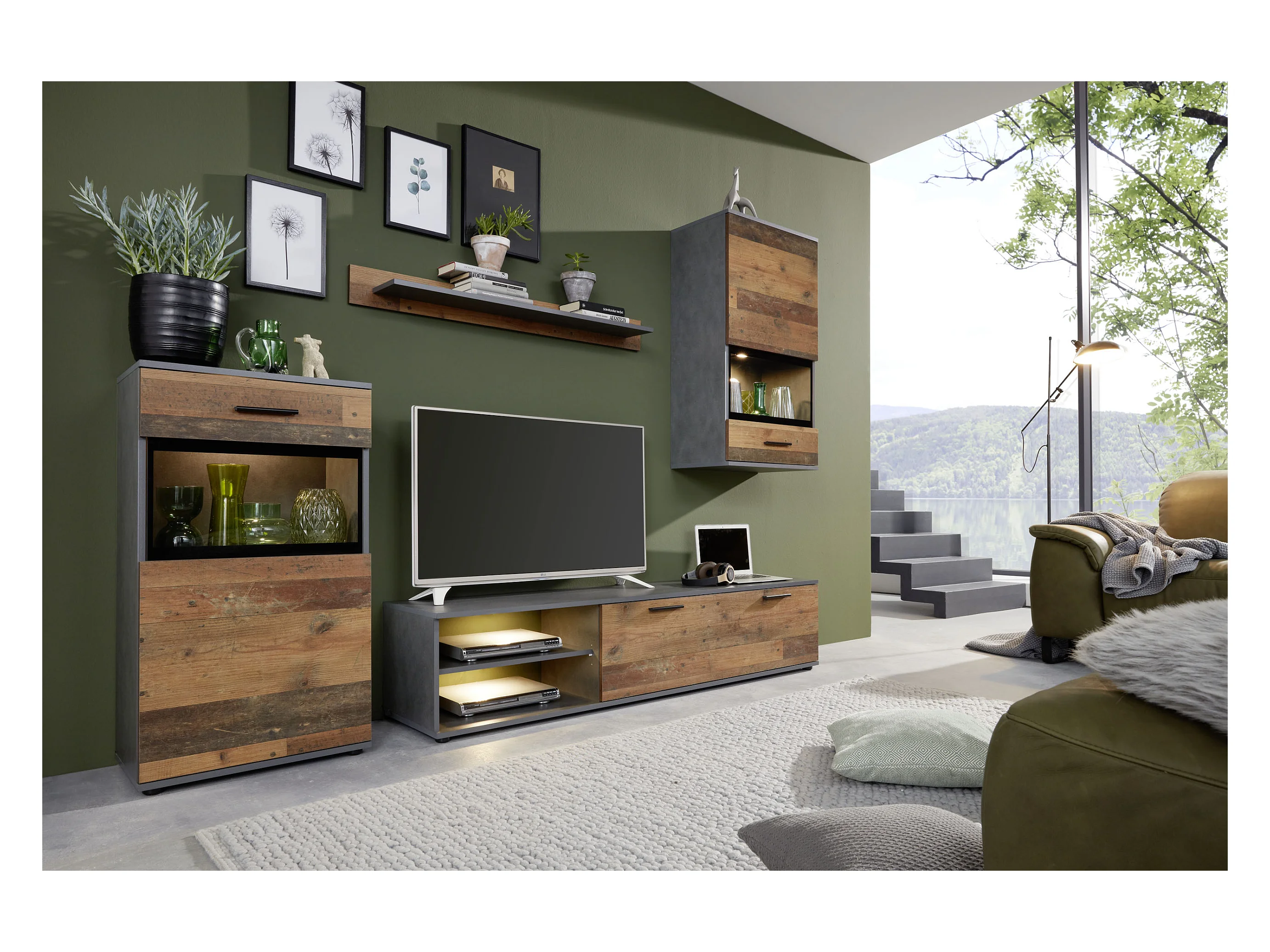 Mala wandkast opstelling A, Matera decor, Old Wood decor.