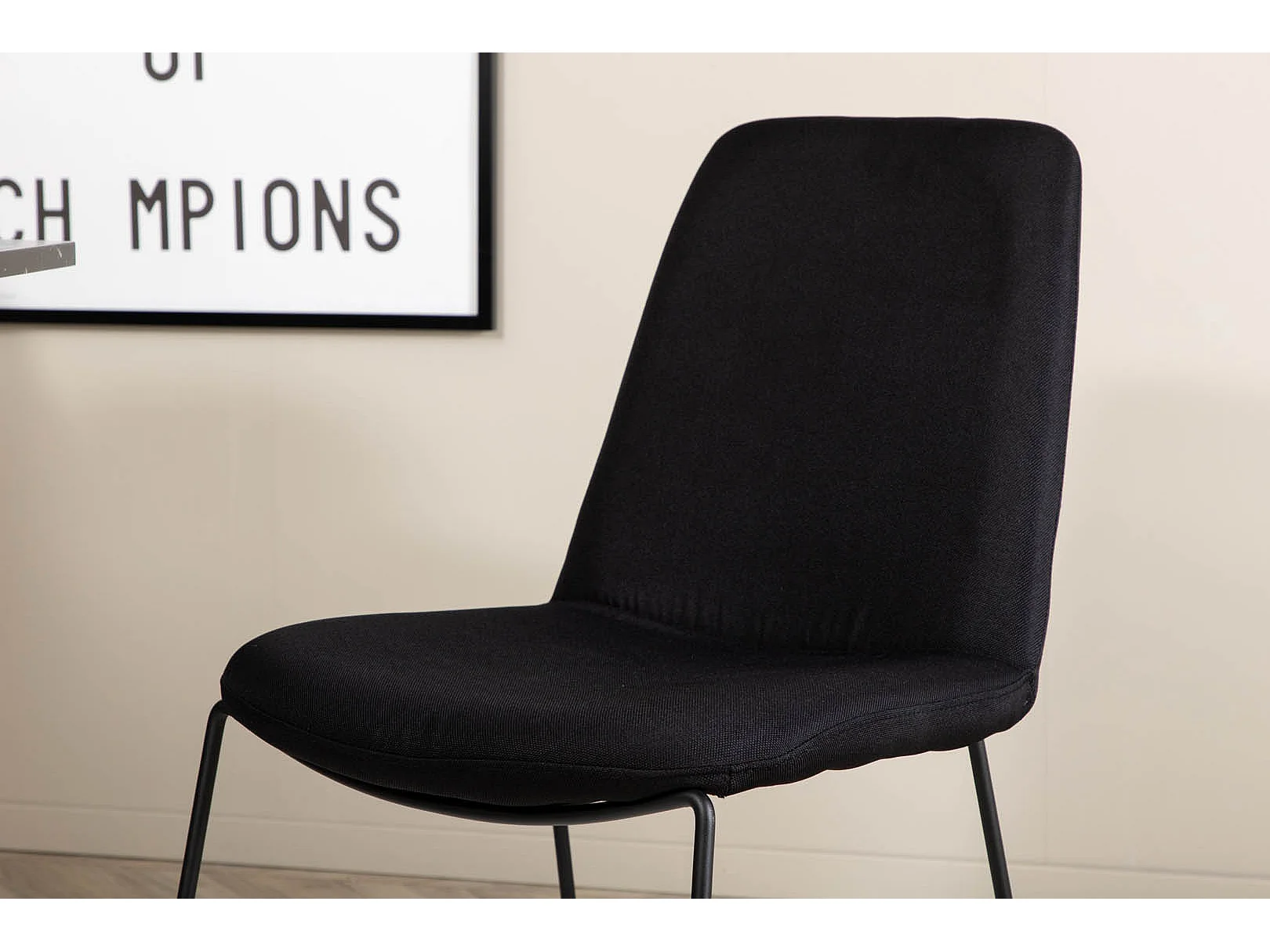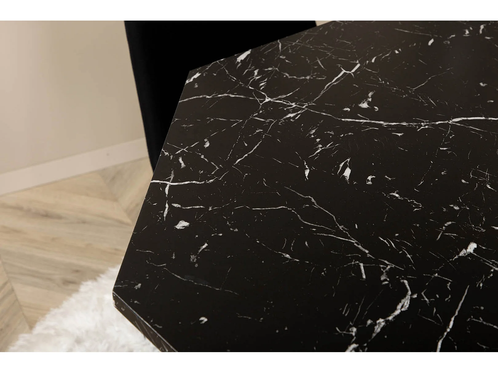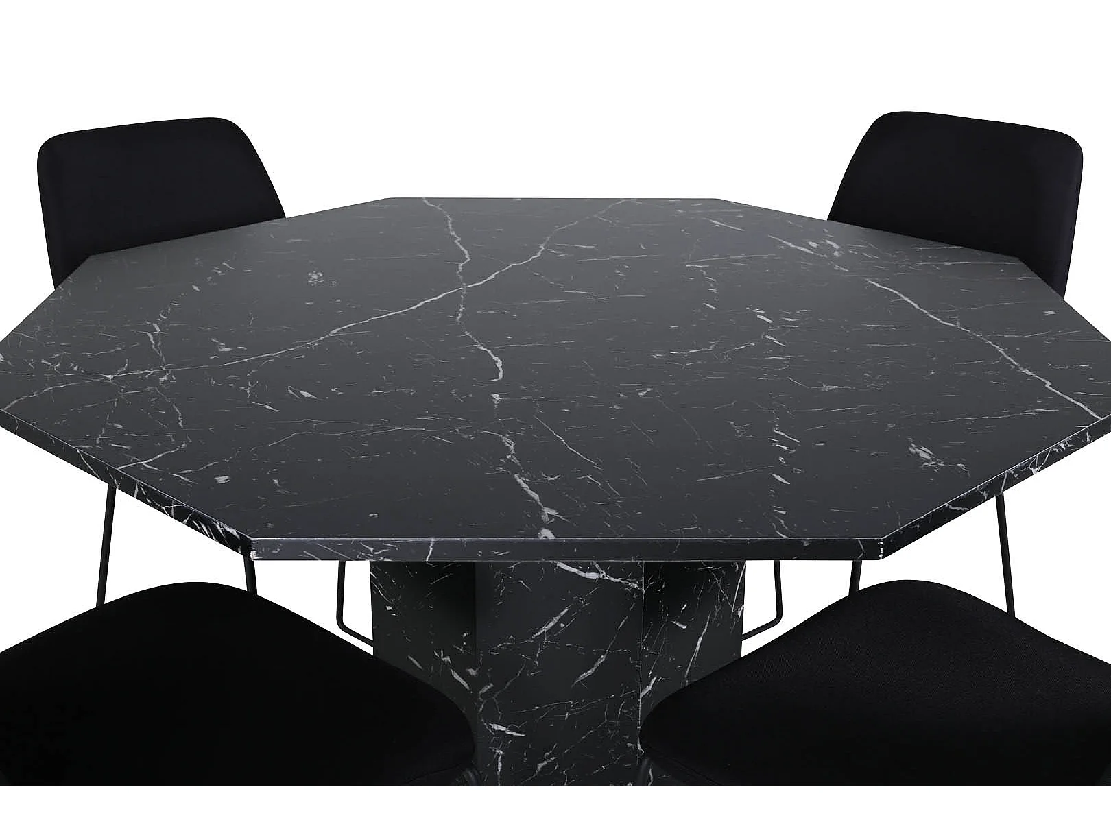 Marbs eethoek eetkamertafel zwart marmer decor en 4 Muce eetkamerstal zwart.