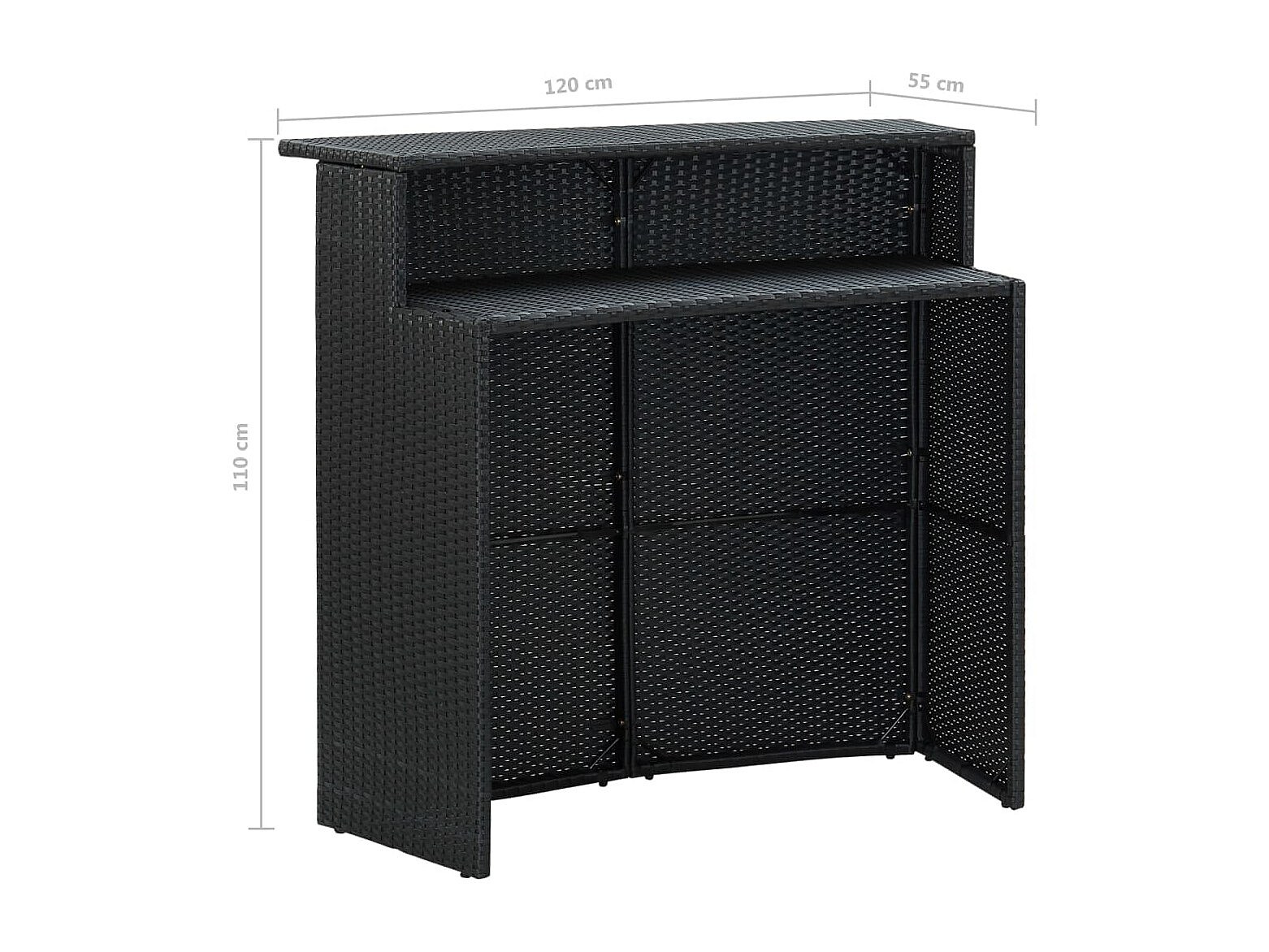 Marie-Monique 3-delige Tuinbarset met kussens poly rattan zwart