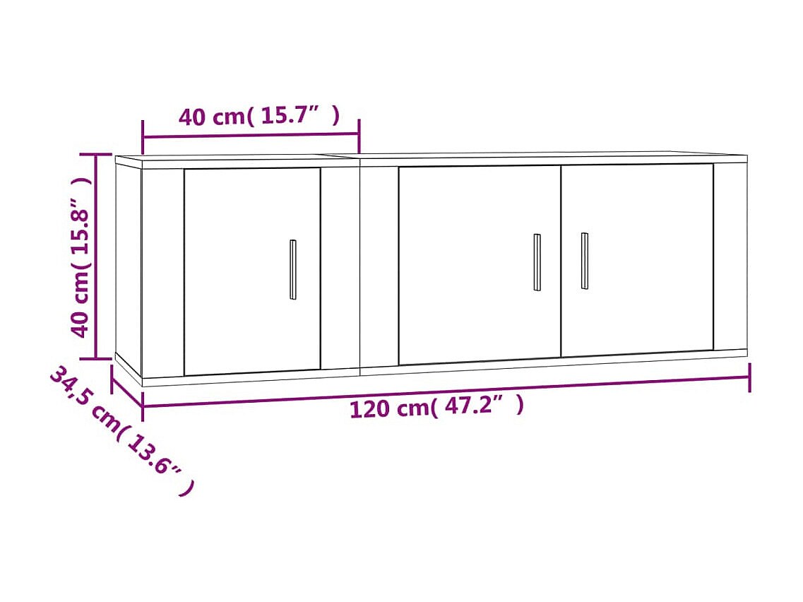 Marisa 2-delige Tv-meubelset bewerkt hout betongrijs