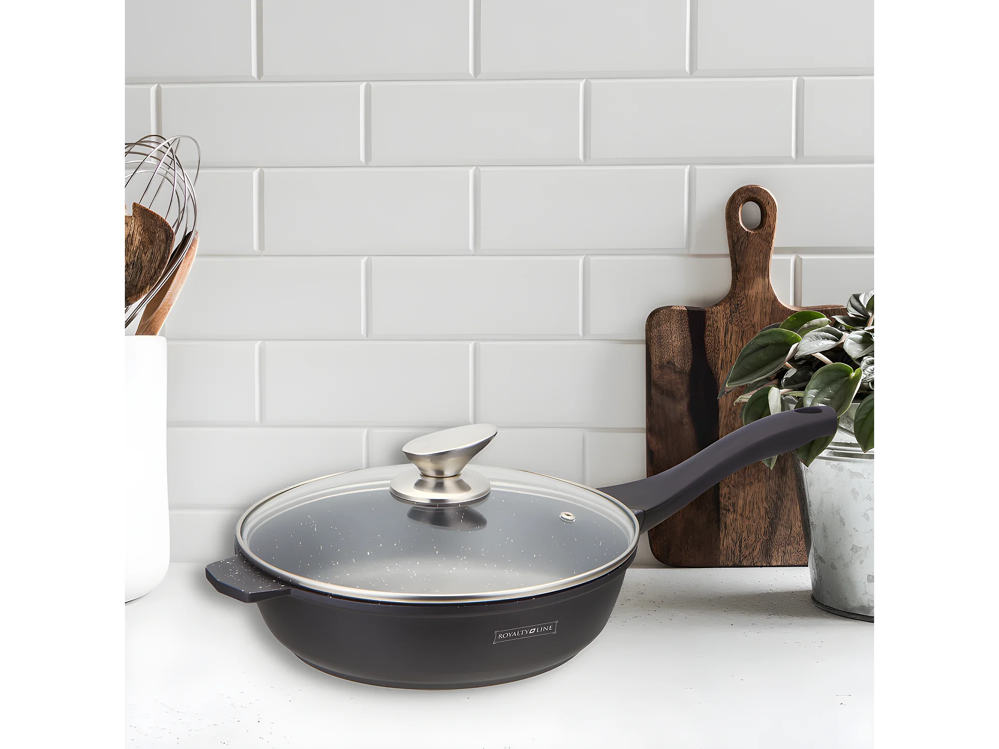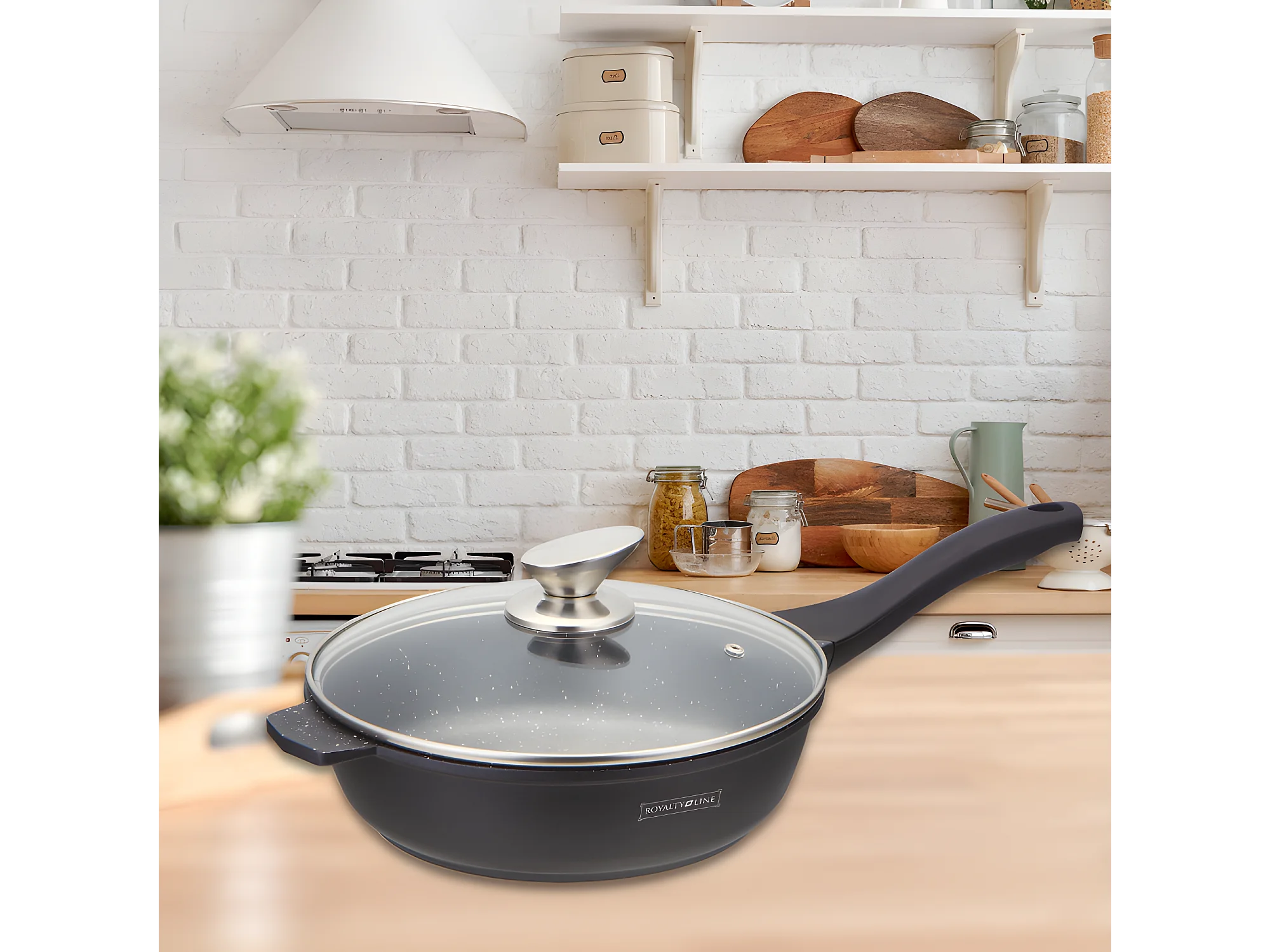 Marmeren koekenpan van 24cm met glazen deksel van Royalty Line RL-BDF24-M