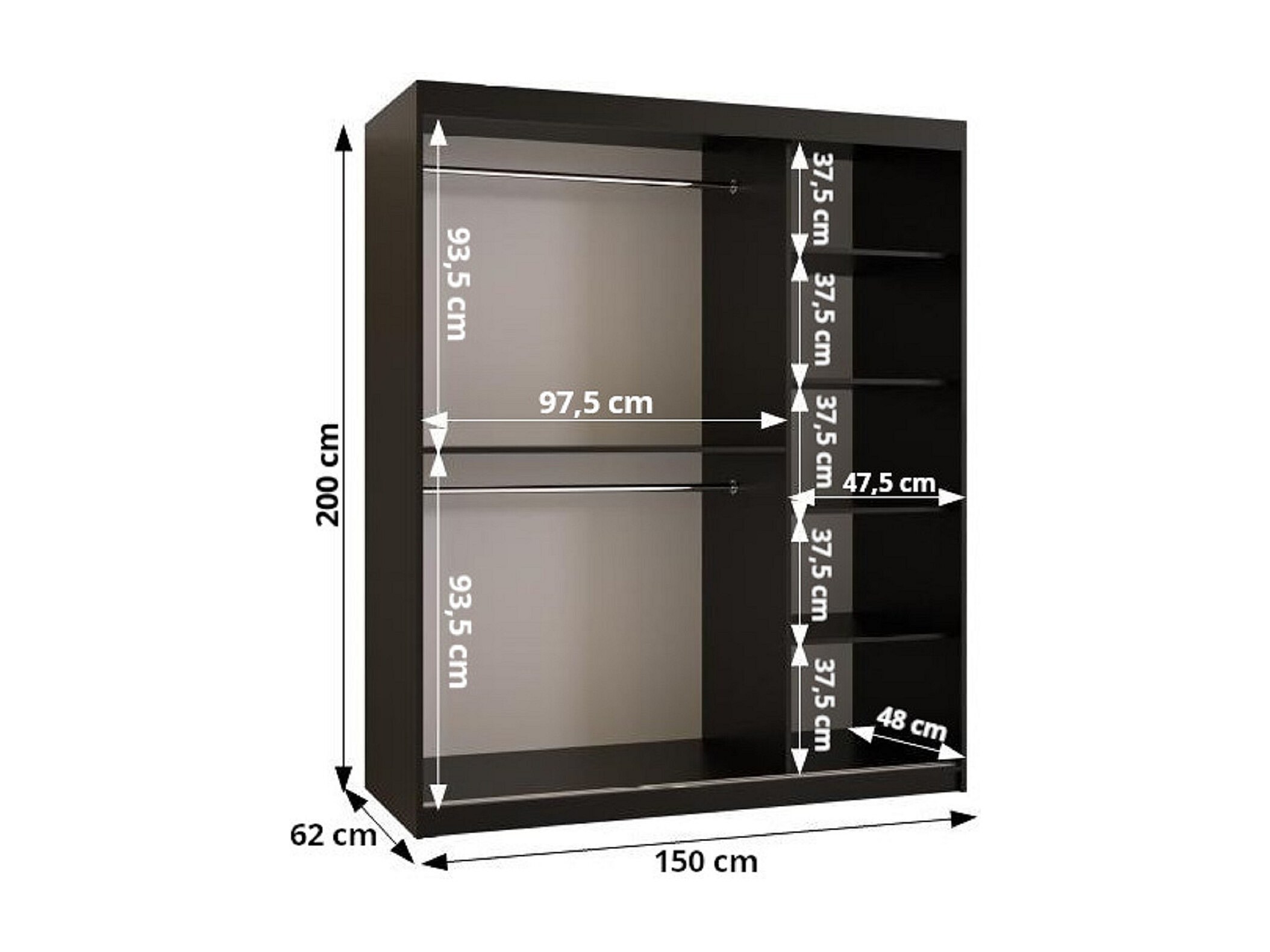 MARSYLIA 2 kledingkast met schuifdeuren 200/150/62 2 deuren (zwart)