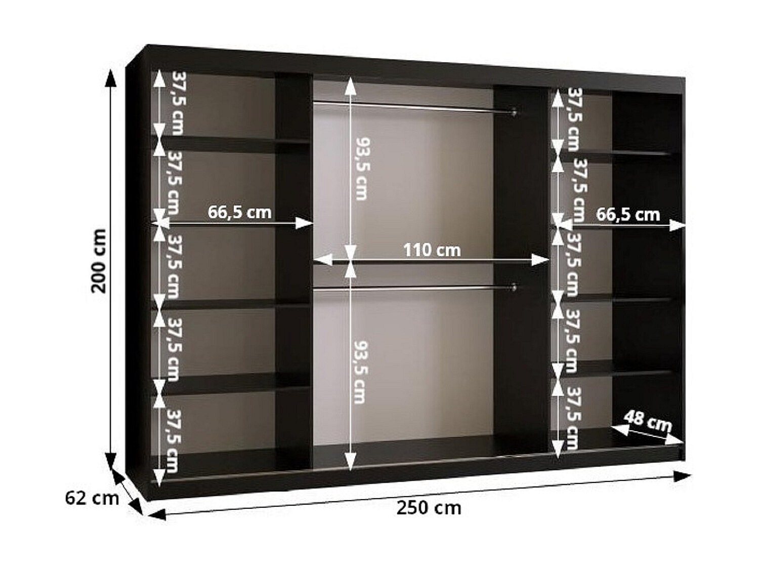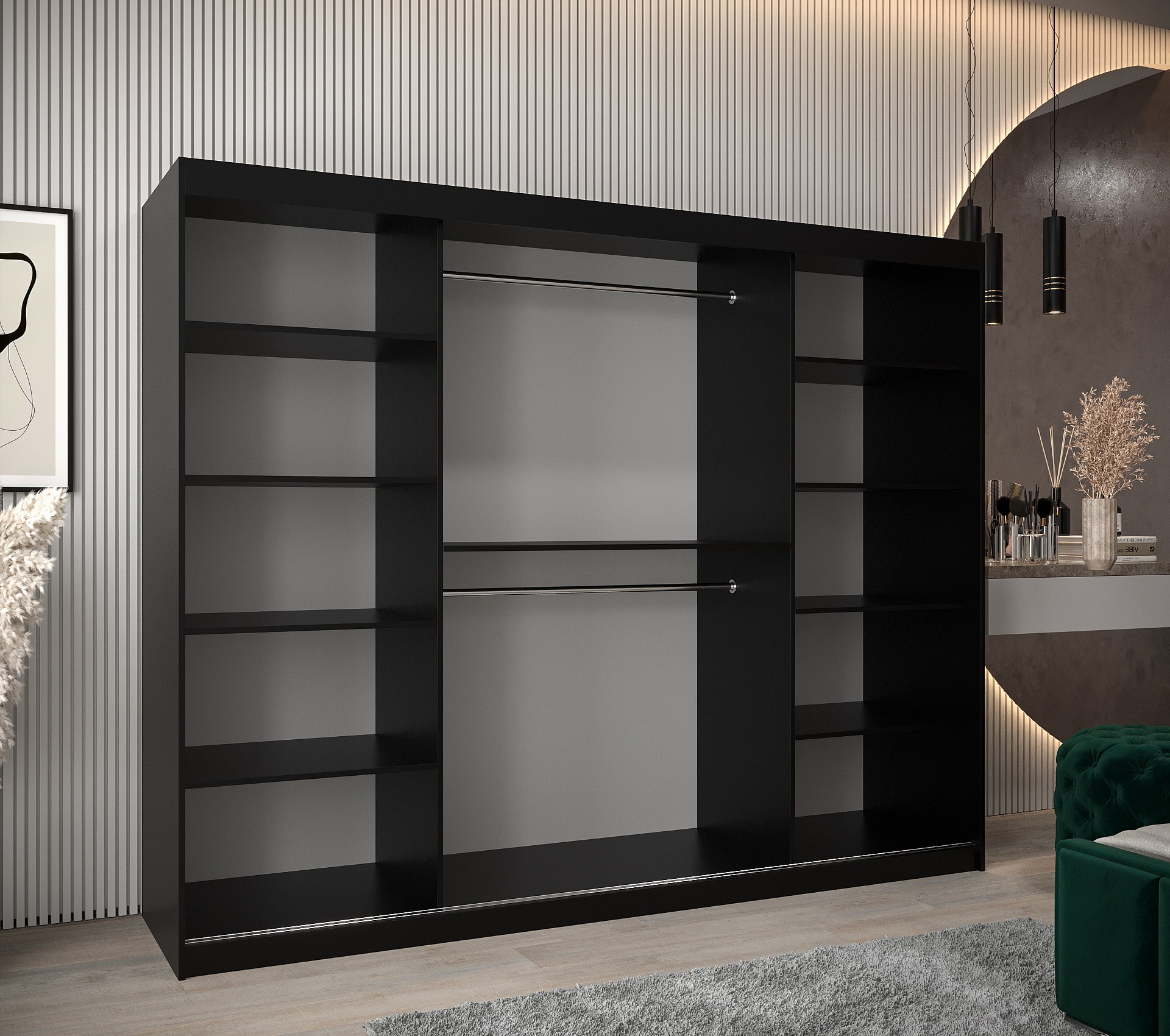 MARSYLIA 2 kledingkast met schuifdeuren 200/250/62 3 deuren (zwart)