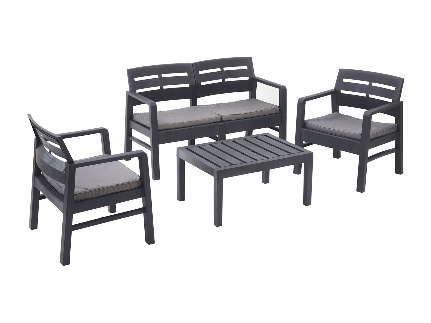Massa outdoor loungeset, Tuinset met 2 fauteuils, 1 bank en 1 salontafel, Binnen- en buitenlounge met kussens, 100% Made in Italy, Antraciet
