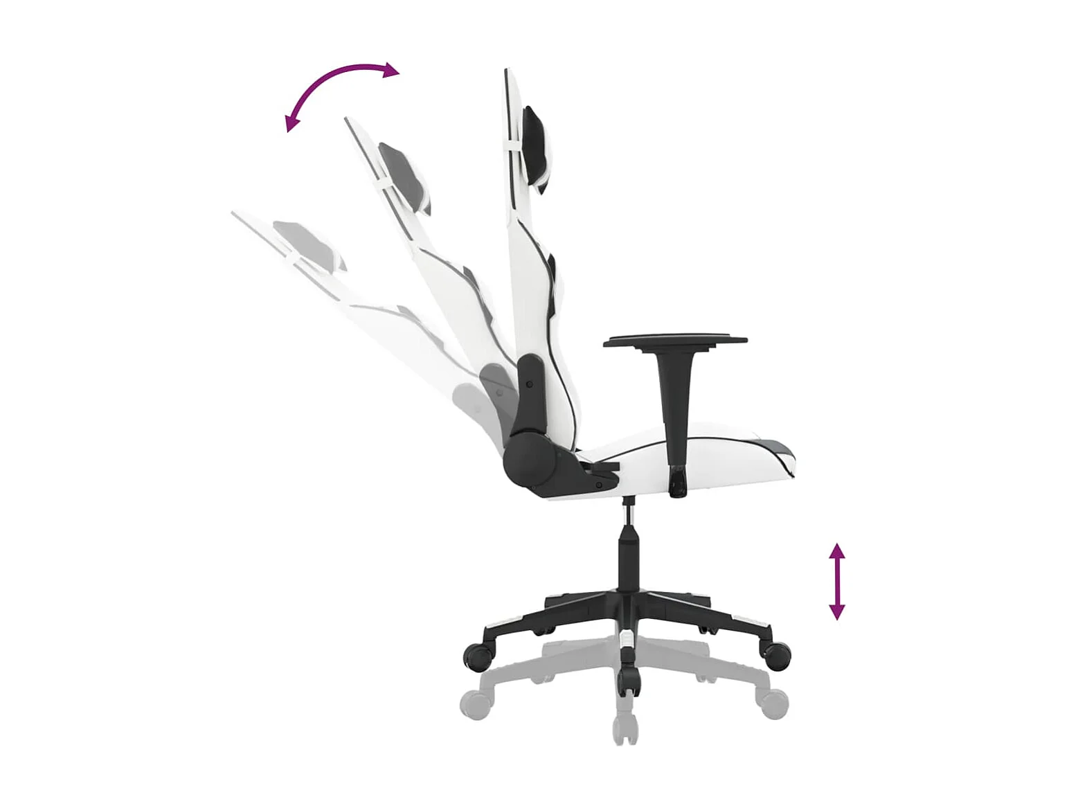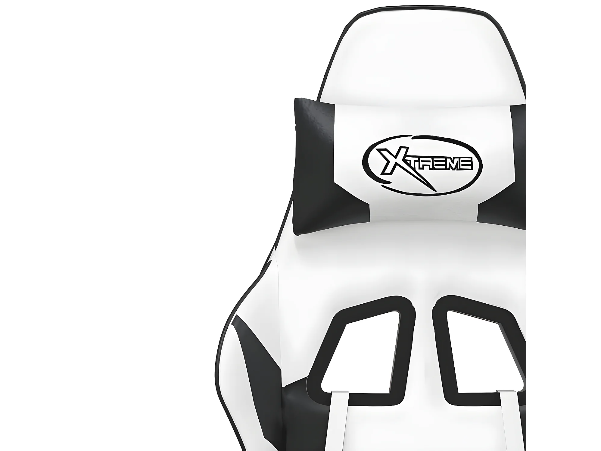 Massage gamestoel met voetensteun kunstleer wit en zwart