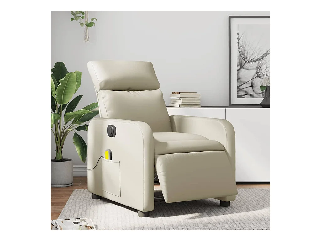 Sta-op-massagestoel elektrisch kunstleer crèmekleurig
