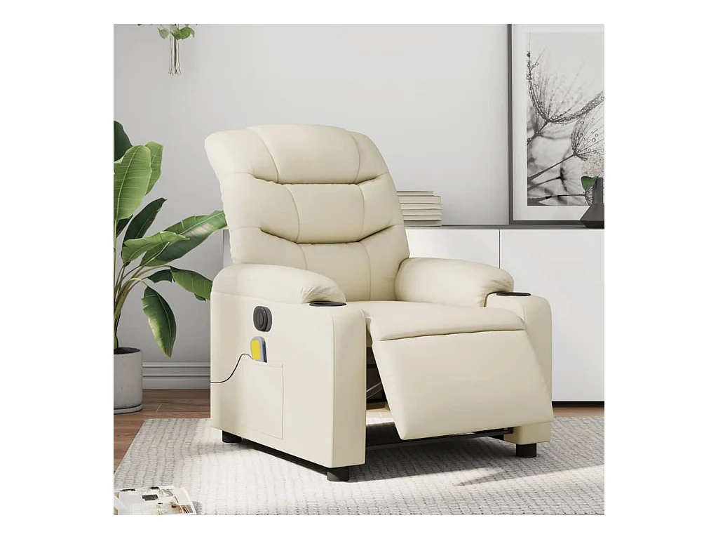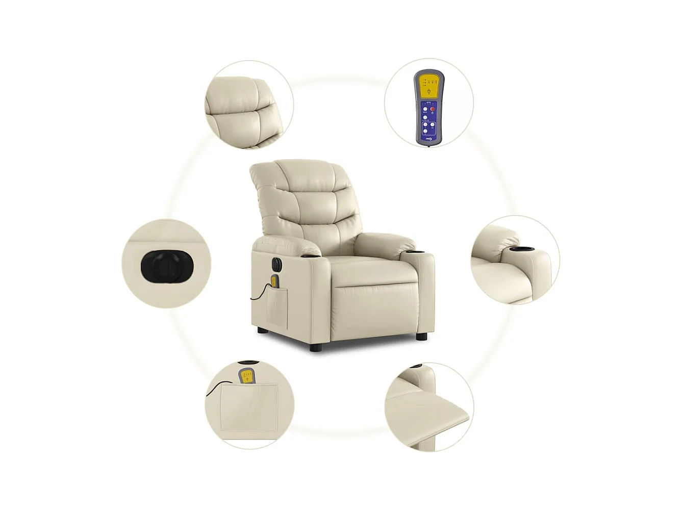 Sta-op-massagestoel elektrisch kunstleer crèmekleurig