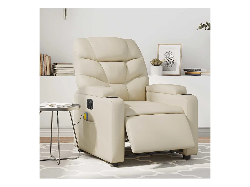Sta-op-massagestoel elektrisch kunstleer crèmekleurig