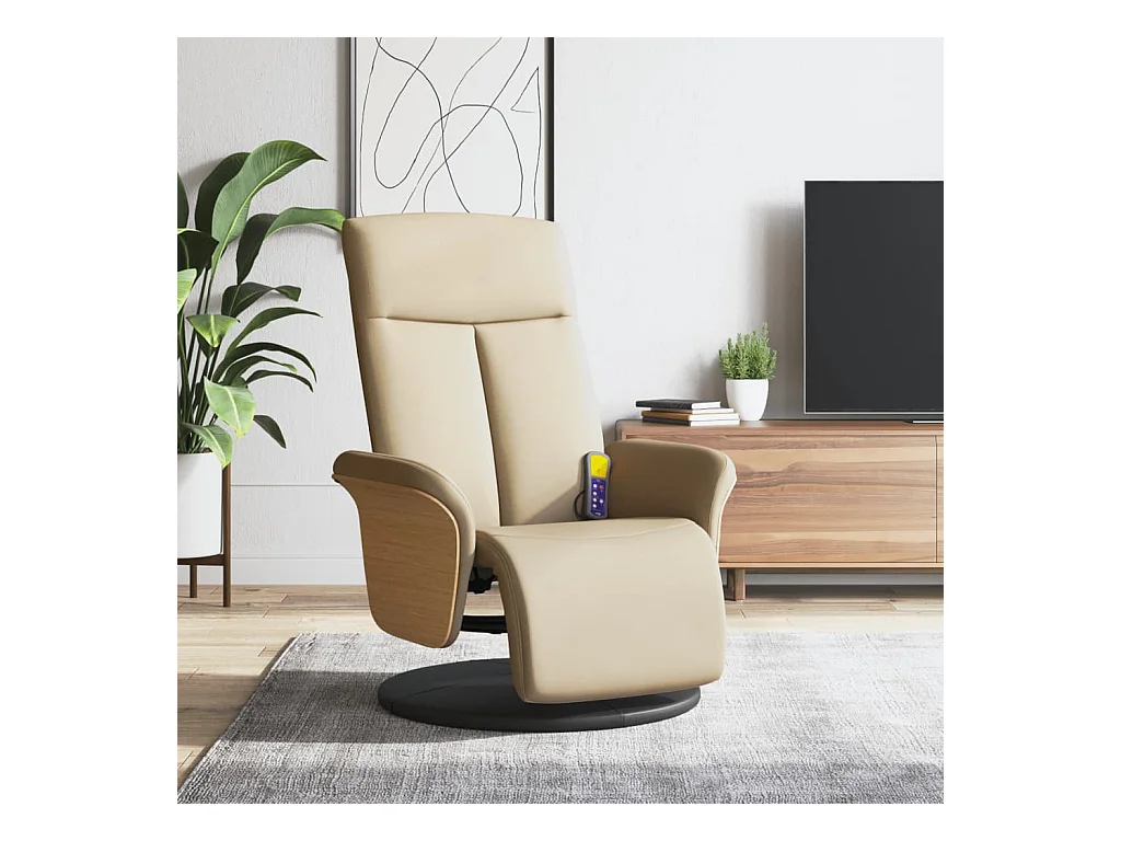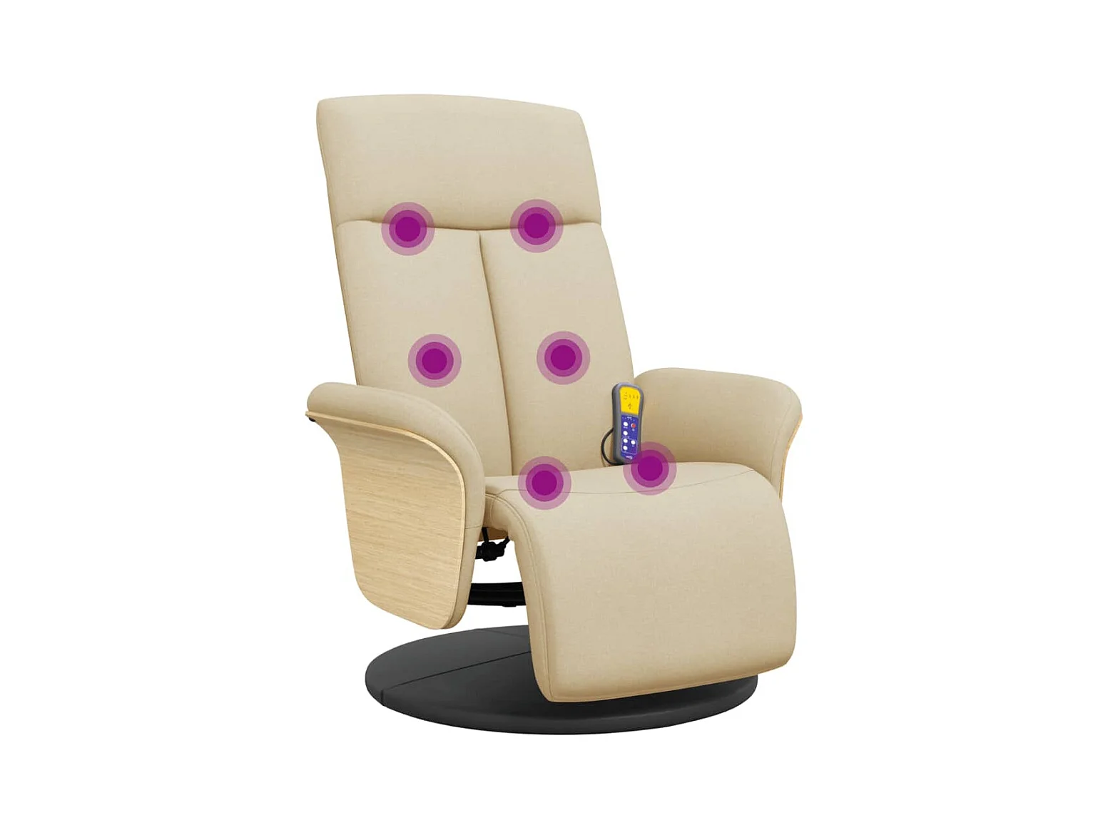 Massagestoel verstelbaar met voetensteun stof crèmekleurig