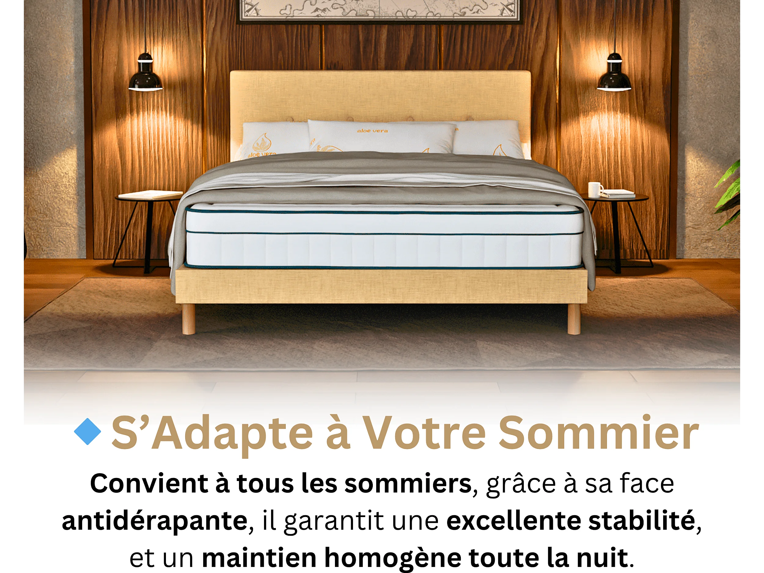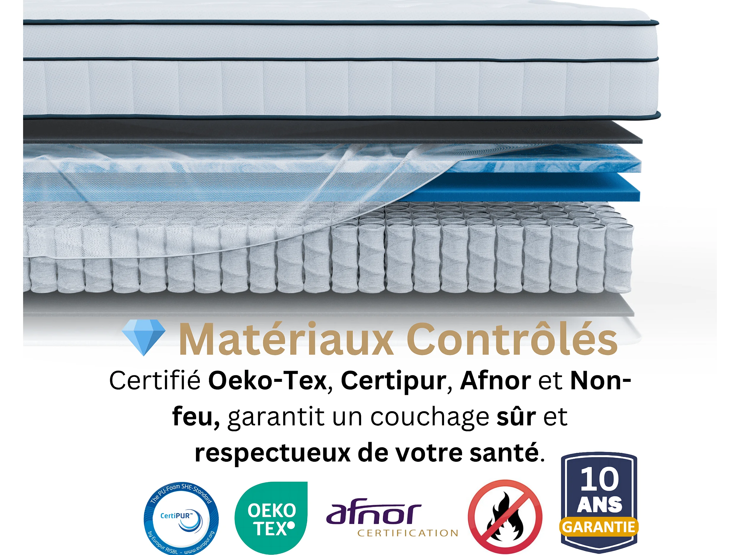 90x200 1-zits Thalassa Matras voor Kinderen en Volwassenen - Hybride: Pocketveren - Hoge Kwaliteit 60 kg/m³ Traagschuim - Tegen Rugpijn