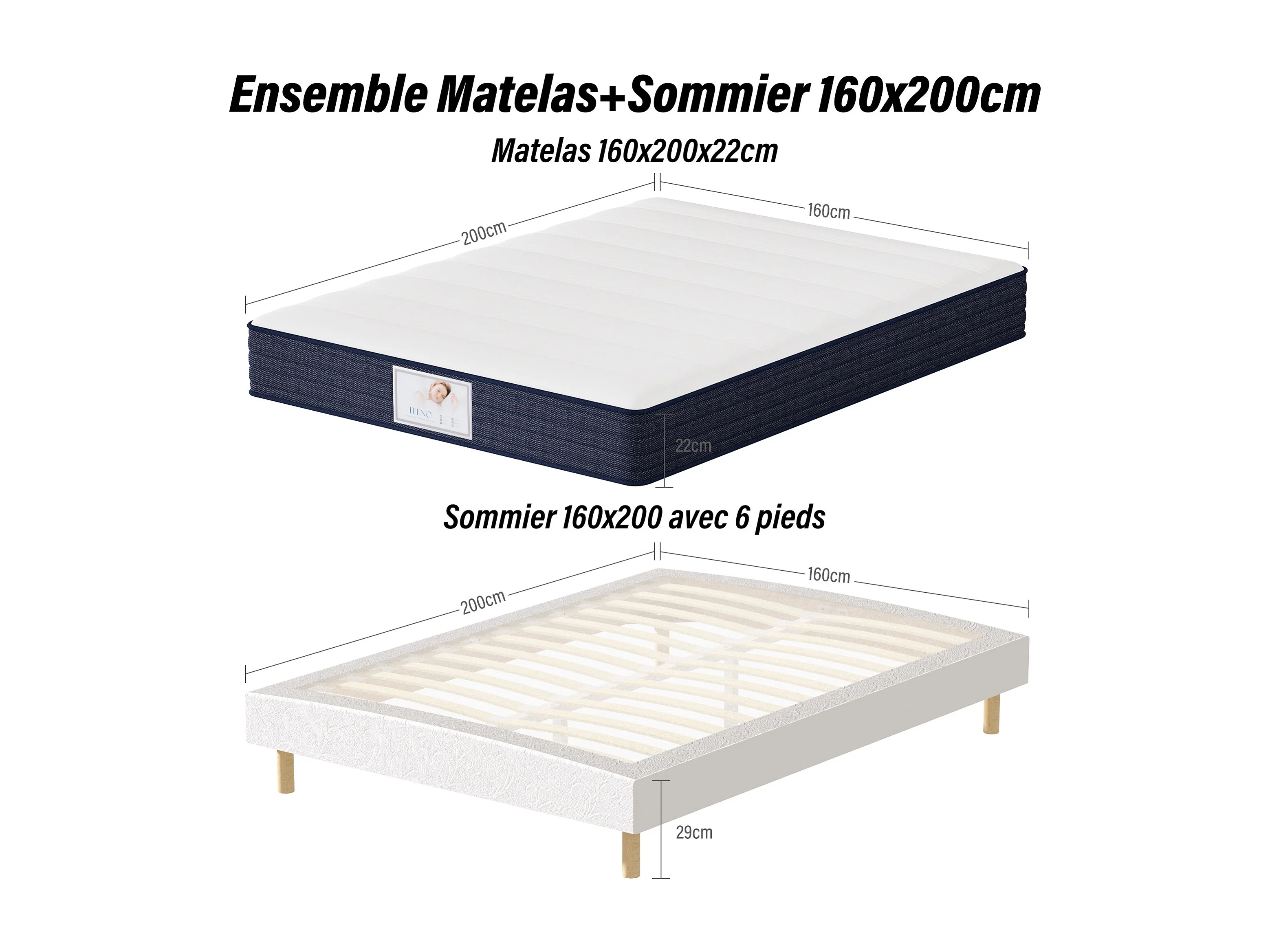 Matras + lattenbodem 160x200 cm, dikte van de matras 22 cm