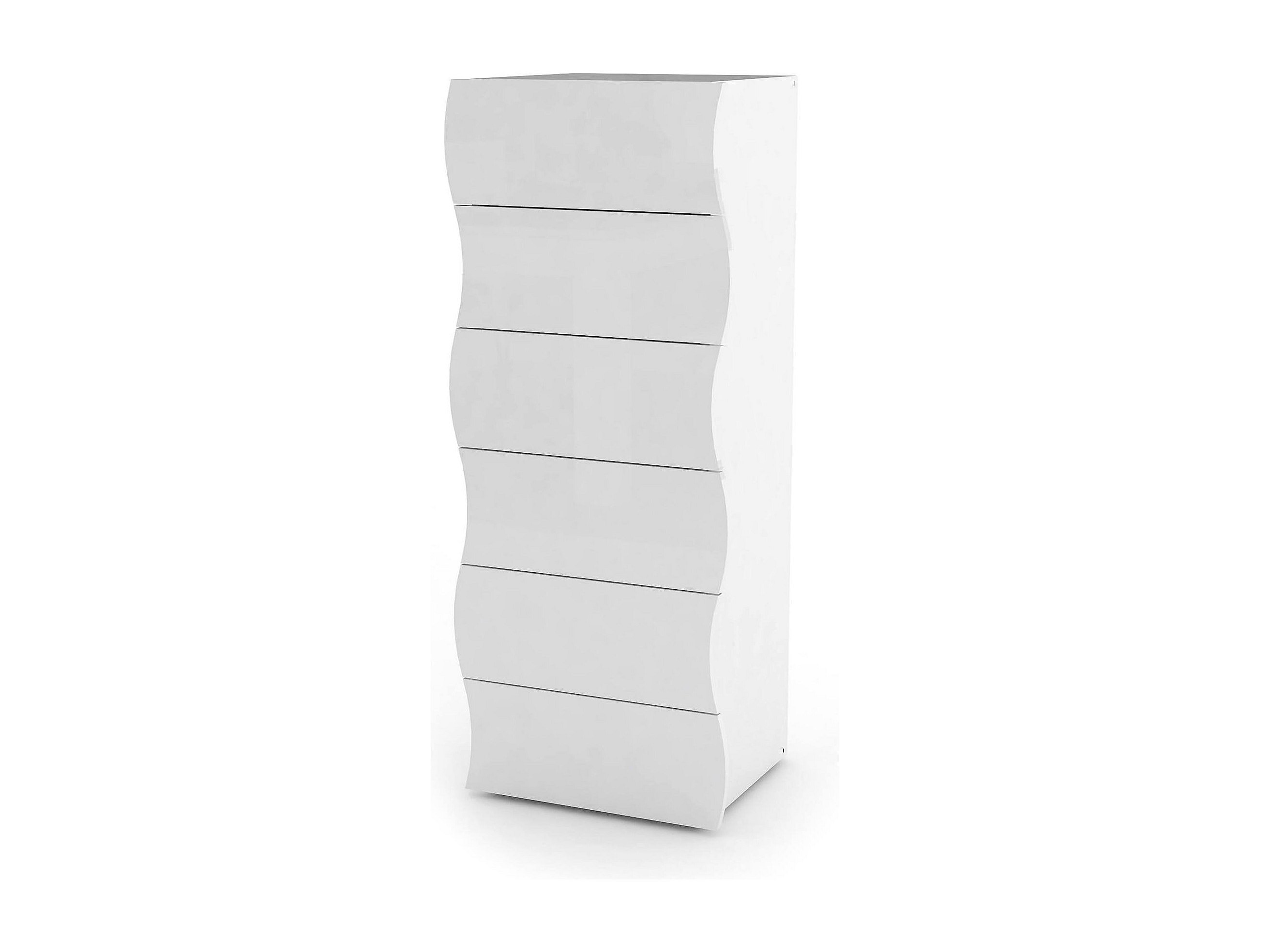 Matteo ladekast, ladekast met 6 laden, Slaapkamerdressoir, 100% Made in Italy, 50x40h122 cm, Glanzend wit
