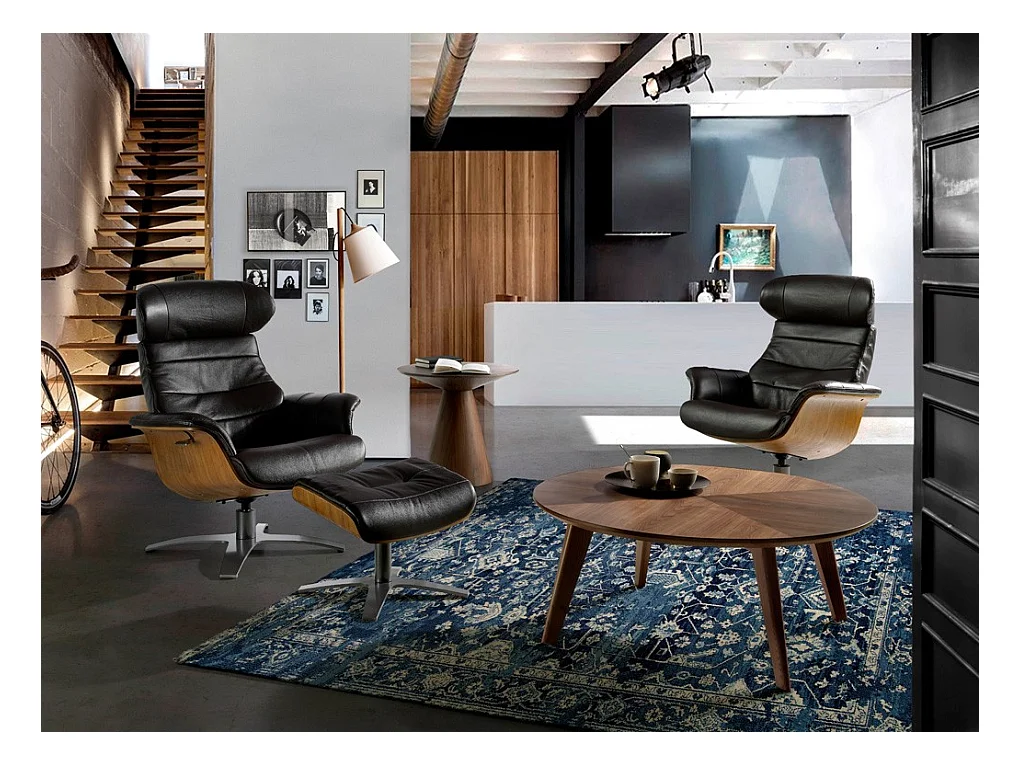 Ronde bijzettafel in lichtbruin en zwart walnotenhout Liza