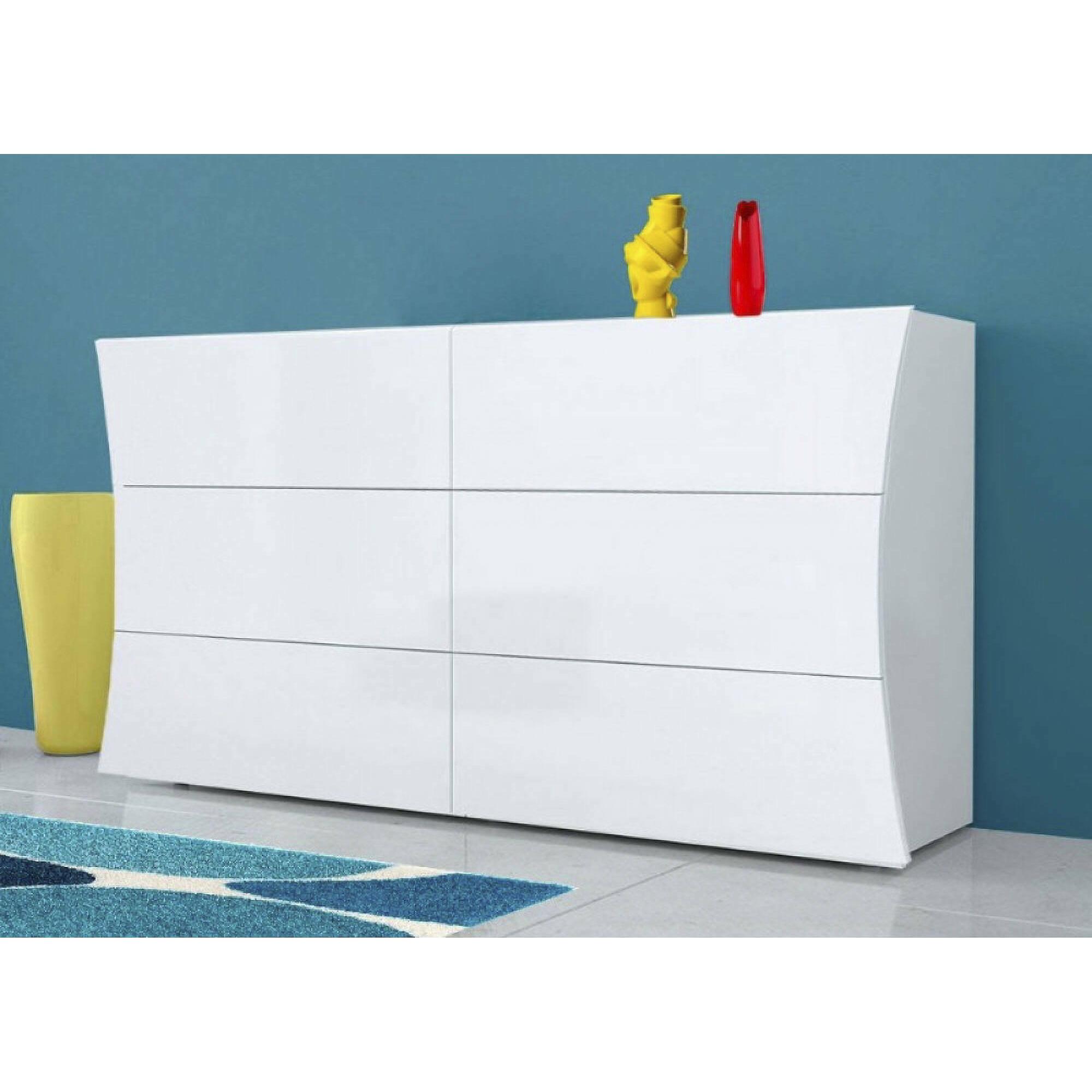Mauro ladekast, ladekast met 6 laden, slaapkamerdressoir, 100% Made in Italy, glanzend wit, 155x40h82 cm
