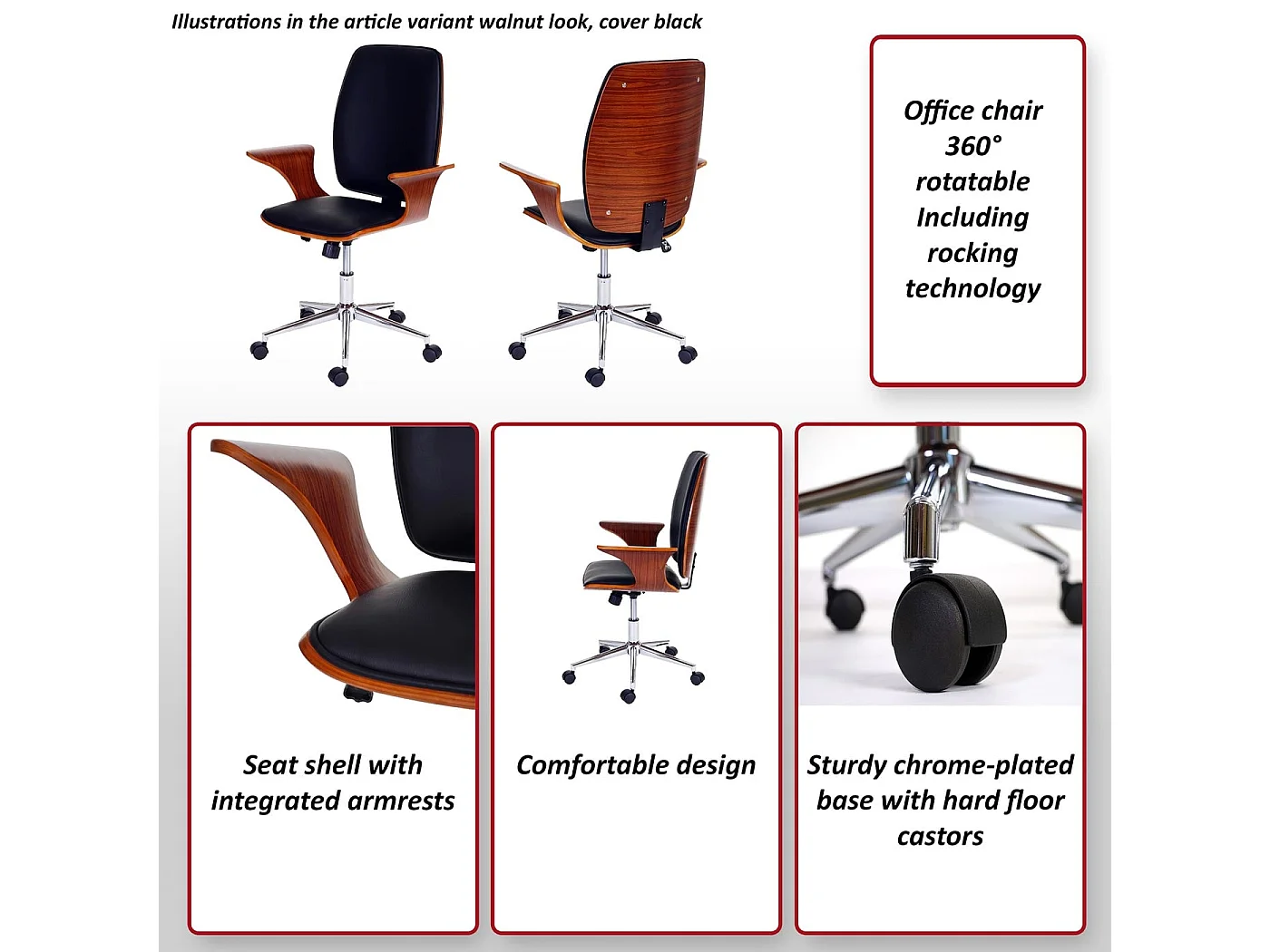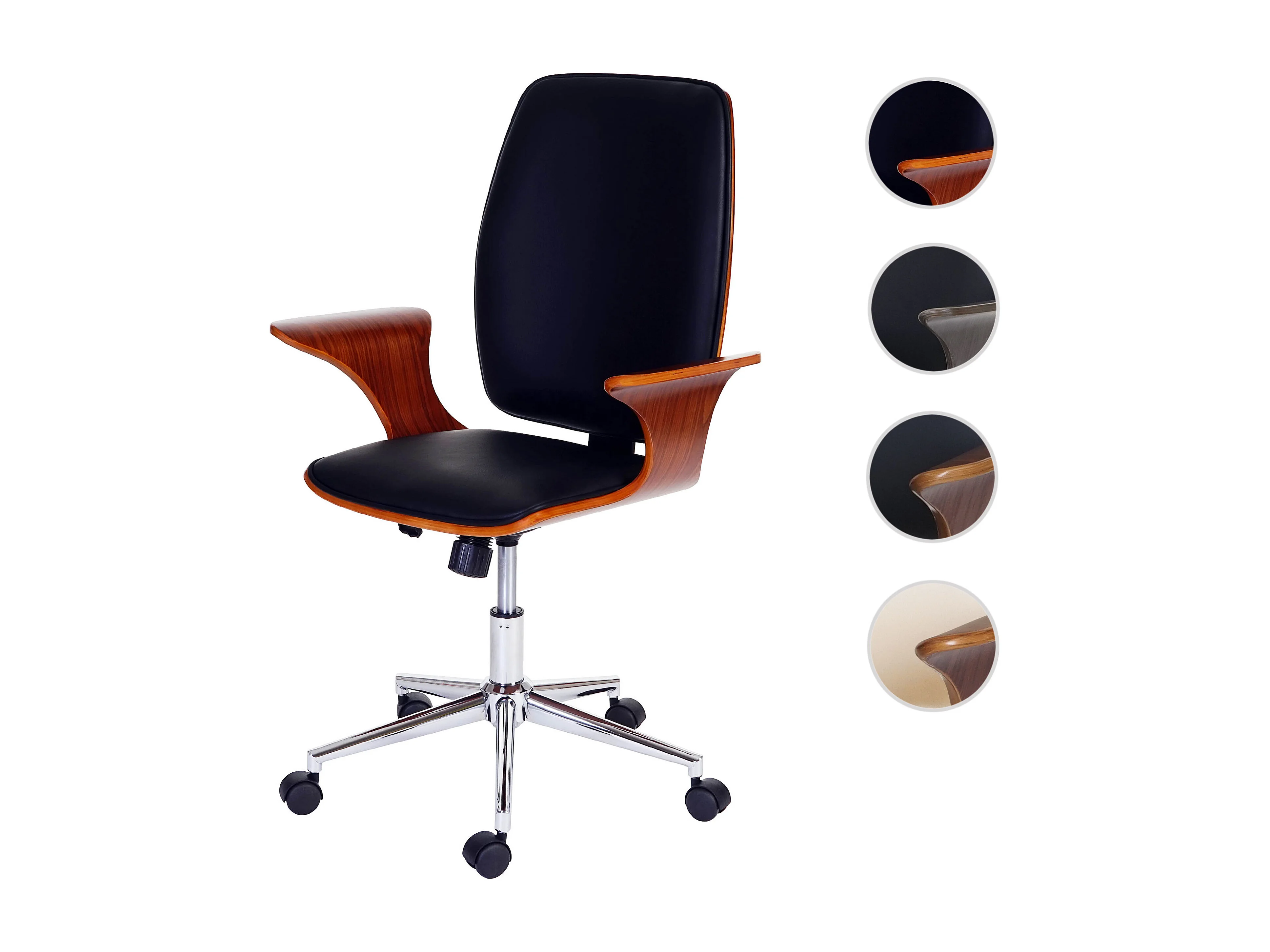 Bureaustoel MCW-C54, walnoot look, zwarte bekleding