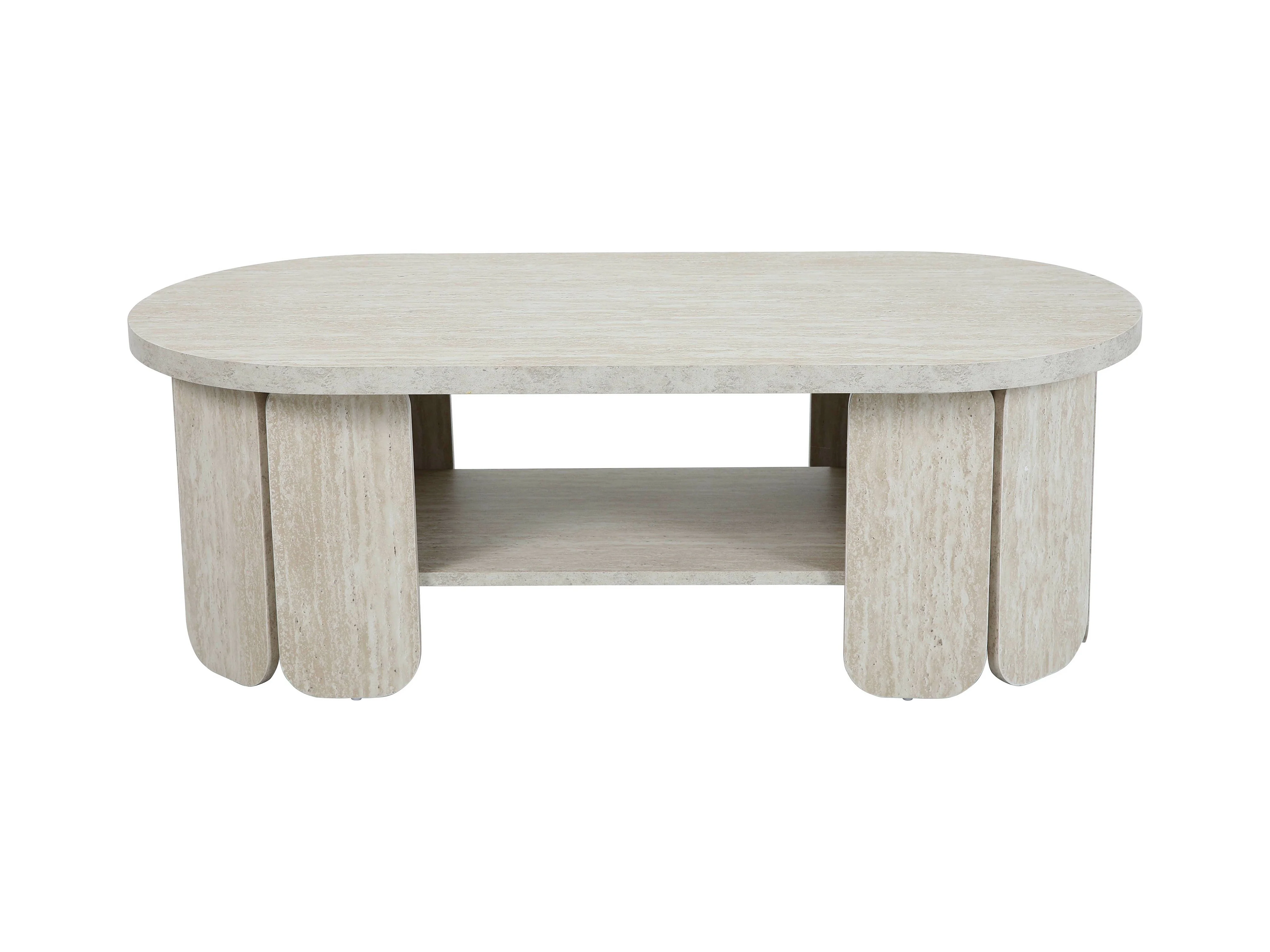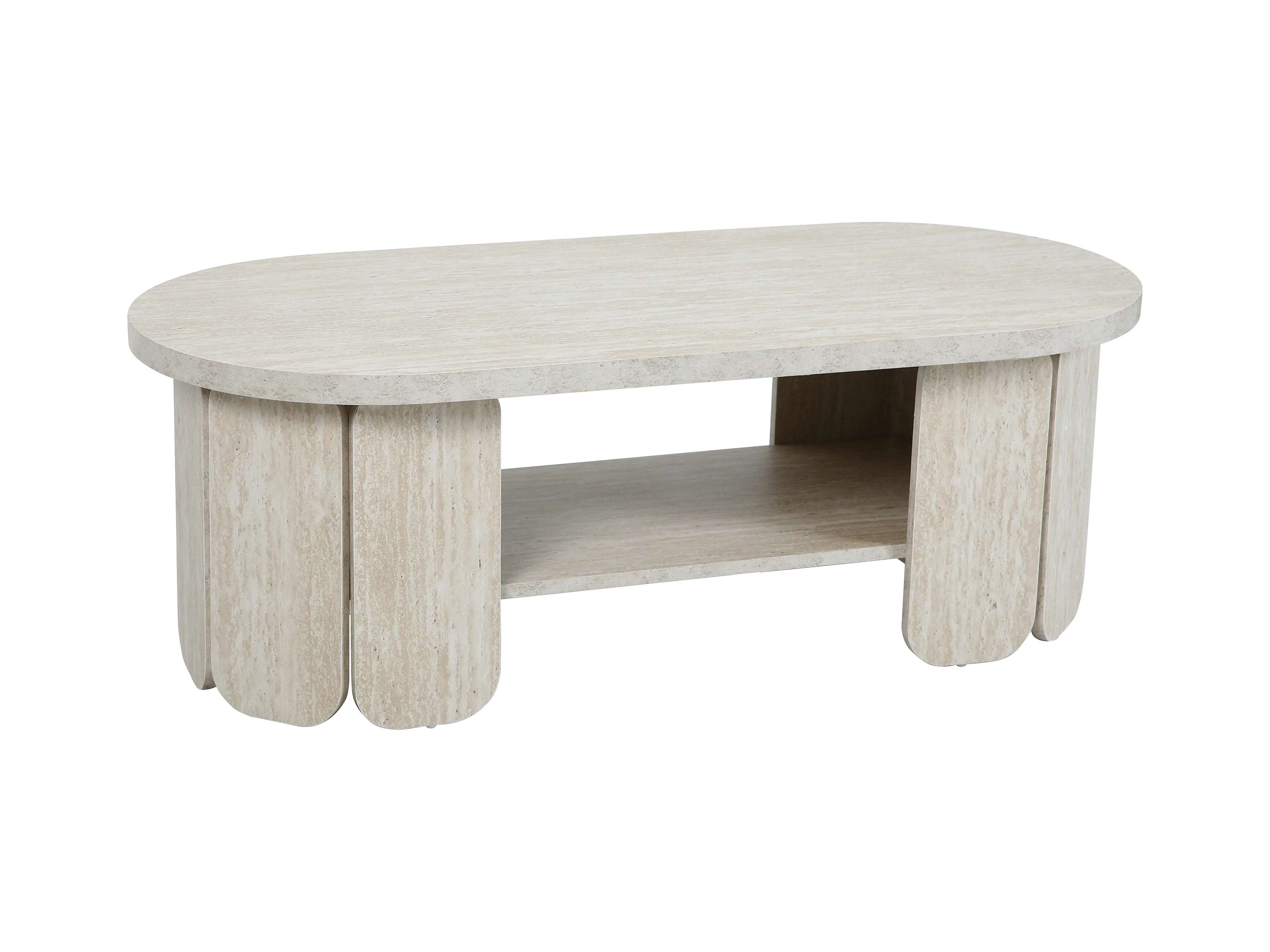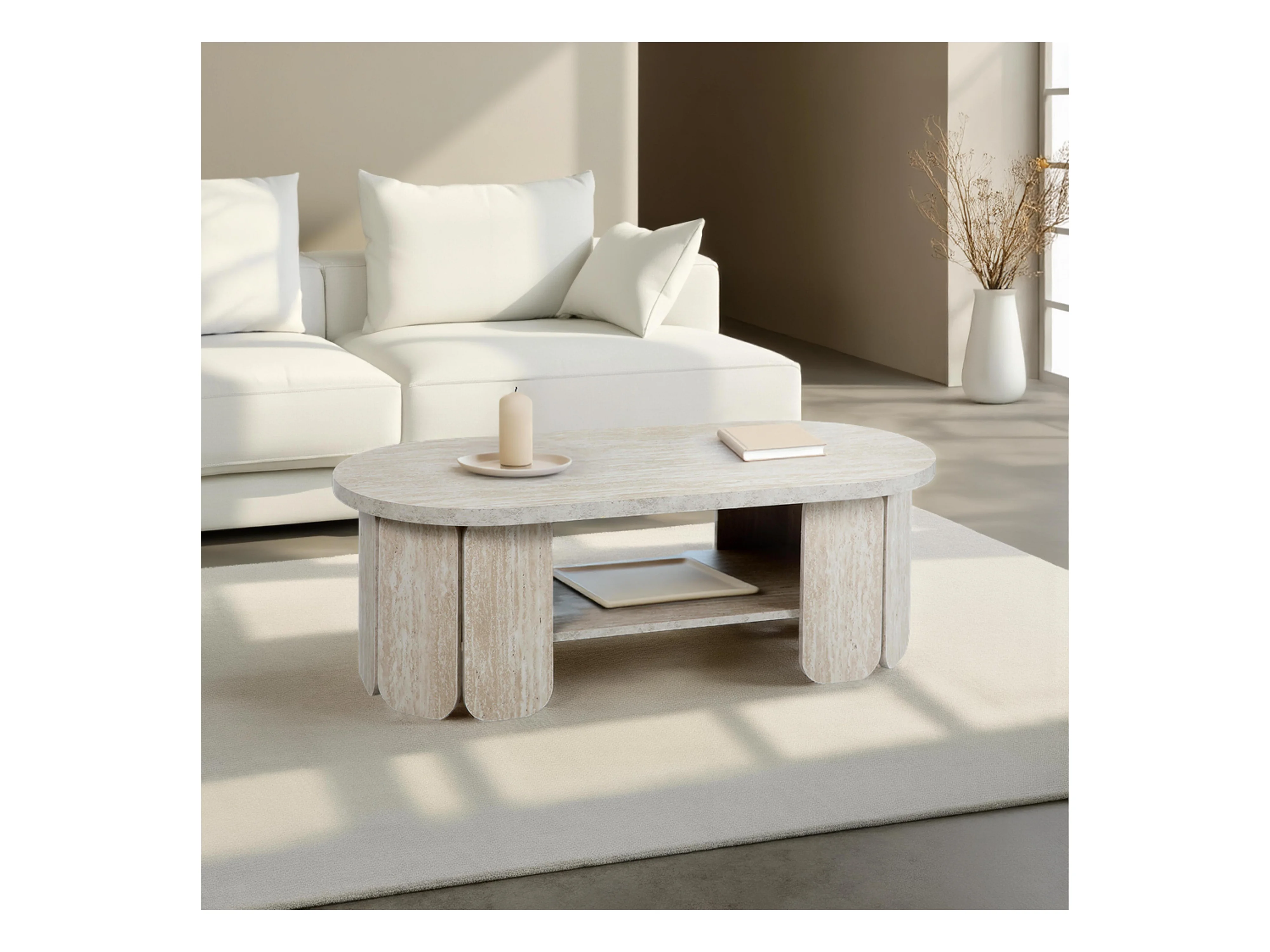 Ovaal Salontafel met Witte Travertijn Effect 119x60cm