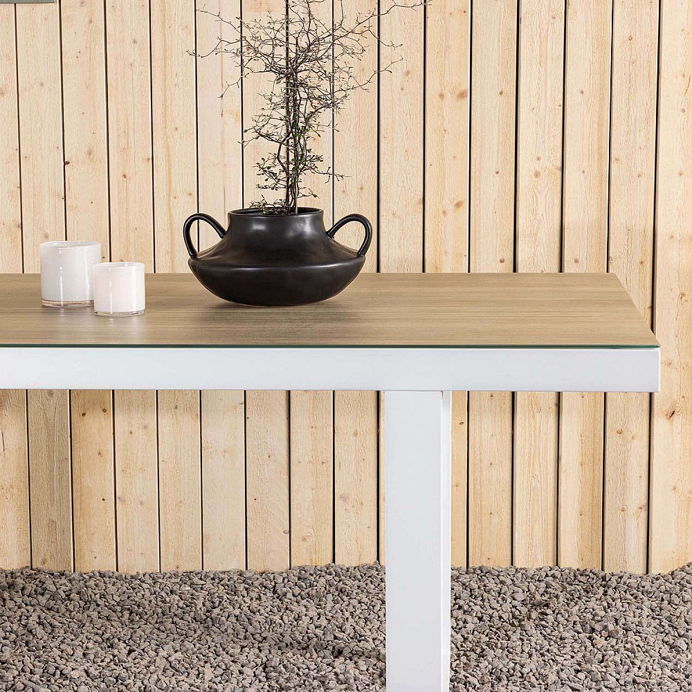 Tuintafel 110x110x71 cm poly rattan en acaciahout beige NL150783
