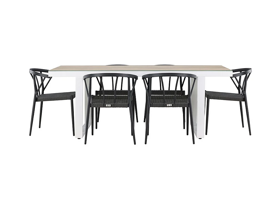 MerloLindos tuinmeubelset 1 eettafel, 6 stoelen wit.